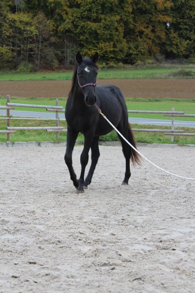 Jack ist ein 1½-jähriger solid Paint Horse Wallach, der bei uns geboren und aufgewachsen ist. Nun sucht er eine neue Bezugsperson, die seine weitere Ausbildung fördern möchte. Jack zeigt sich im Umgang freundlich, verschmust und ausgeglichen, dabei stets aufmerksam und lernwillig. Jack kennt alle Grundlagen, die ein Jungpferd in diesem Alter beherrschen sollte (Putzen, Hufe geben, Straßenverkehr, Arbeit am Strick und Leitseil, Verladen...) Jack lebt aktuell in einer kleinen gemischten Gruppe im Offenstall, kennt aber auch die Boxenhaltung. Ein ideales Jungpferd für alle, die sich einen ruhigen, unkomplizierten Partner wünschen.