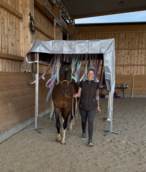 Jackson ist ein ganz besonderer Wallach, der mit seinem feinen Wesen und seiner ruhigen Ausstrahlung sofort berührt. Er ist kein „Sportpferd“, sondern ein Partnerpferd – für Menschen, die den Schwerpunkt nicht ausschließlich im Reiten sehen, sondern Freude an gemeinsamer Arbeit, feiner Kommunikation und echter Beziehung haben. Er sucht einen einfühlsamen Menschen, der hinhört, fühlt und ihm Zeit gibt. Wer bereit ist, sich auf dieses sensible Pferd einzulassen, findet in Jackson einen ehrlichen, loyalen Gefährten mit viel Herz. Ausbildungsstand Jackson wurde vielseitig und pferdegerecht ausgebildet: - Bodenarbeit - akademische Arbeit - Handarbeit - Stangenarbeit - Trail-Einheiten - klassische Reitweise - Western-Grundausbildung - Freizeit & Gelände geländesicher geht alleine sowie in der Gruppe ins Gelände Charakter: - sehr lieb, höflich und brav im Umgang - fein, sensibel und aufmerksam - kein Anfänger- oder Kinderpferd Ideal für erfahrene, ruhige Menschen mit Gefühl und Geduld. Gesundheit: - Fit und gut im Training - PSSM2-Gendefekt, der ihn bei konsequentem Futter-, Decken- und Bewegungsmanagement nicht einschränkt Haltung: - kennt Offenstall - kennt Boxenhaltung Optional abzugeben: hochwertiger Working-Equitation-Sattel von Deuber & Partner Decken und weiteres Zubehör nach Absprache 🧡 Kontakt & Abgabehinweise: Jackson wird ausschließlich in erfahrene, ruhige und einfühlsame Hände abgegeben. Er ist kein Anfänger‑ oder Kinderpferd und nicht für Menschen geeignet, deren Fokus ausschließlich auf dem Reiten oder auf Leistung liegt. Gesucht wird ein langfristiger Herzensplatz bei einem Menschen mit Pferdeverstand, Geduld und Freude an Beziehung, Bodenarbeit und feiner Kommunikation. Platz vor Preis – Anfragen ohne kurze Vorstellung oder mit reiner Preisorientierung werden nicht beantwortet.