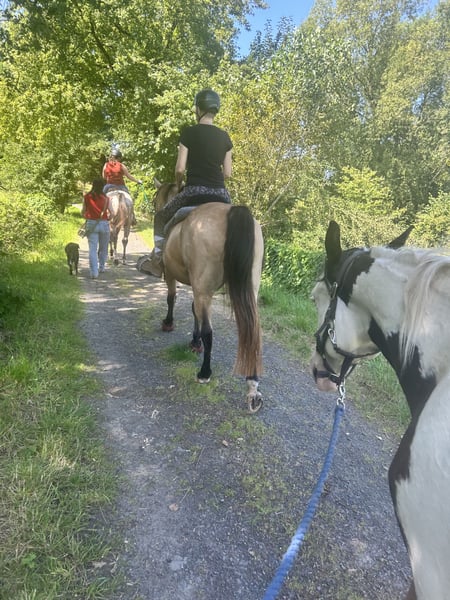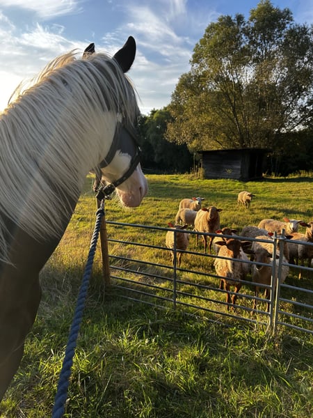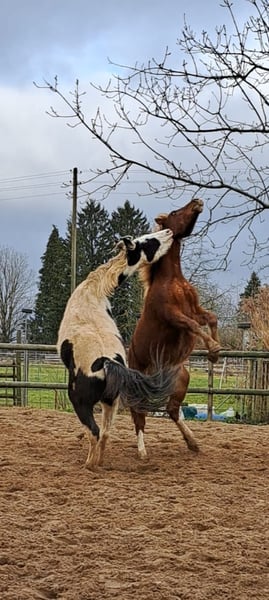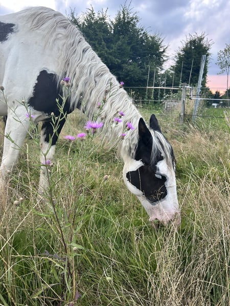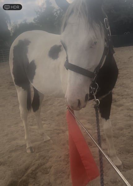 Django Midnight Kitts – junger sehr schlauer, unerschrockener, rangniedriger unkomplizierter Paint Horse Wallach. Er hat einen Traumcharakter und sucht seinen Herzensmenschen und ein 5 Sterne Endplatz. Ich habe mit ihm bereits ziemlich viel gemacht und daher kennt er auch dementsprechend viel und ist sehr anhänglich, ein super braves und liebes Pferd. Er klebt nicht an anderen Pferden eher an Menschen die ihn kuscheln er ähnelt eher an einen Hund der immer beim Menschen sein will. AQHA-Papiere & Abstammung vorhanden. Gechipt & korrekt registriert Django ist im April 2024 geboren, ein gesunder großer junger Paint Horse Wallach mit guter Abstammung und Papieren APHA /Equidenpass (5-Panel getestet) und einem einzigartigen Look – zwei eisblaue Augen machen ihn zum echten Hingucker! Er hat eine schöne dicke Mähne und einen schwarzen Schweif. Er wird ca. 155-160 cm groß. Auf Wunsch mit Aku. Er ist super menschenbezogen, verschmust, extrem lernwillig und versteht sich bestens mit anderen Pferden. Für sein Alter kennt er bereits lange Spaziergänge im Gelände, läuft unproblematisch an Kühen, Schafen, Ziegen und Traktoren vorbei. Fährt problemlos Hänger, putzen, Schrecktraining und reagiert schon auf Kommandos. Aktuell lebt er in einer 4 er Gruppe (Sommer: 24h Weide, Winter: Offenstall mit Paddoc und 24/7 Heu. Regelmäßig entwurmt, geimpft (Tetanus & Influenza) und beim Hufschmied. Django ist kein Notverkauf und wird nur wenn alles passt in liebevolle, pferdegerechte Hände abgegeben. Nicht in boxenhaltung verkauft. Auf den letzten Bilder sieht man Elterntiere und den Großvater. Was mir wichtig ist: Ich wünsche mir Menschen, die: • Erfahrung mit Westernpferden haben • die nötigen Haltungsbedingungen bieten können • sich der laufenden Kosten (Hufschmied, Futter, Tierarzt etc.) bewusst sind und diese problemlos tragen können • ein Pferd als langfristigen Partner sehen Wenn du das Gefühl hast, dass genau sie zu dir passt, freue ich mich sehr über eine Nachricht mit ein paar Informationen zu dir und deinen Vorstellungen. Mehr Fotos, Videos und Details sende ich gerne zu. Kennenlernen auch gerne jederzeit nach Absprache möglich.