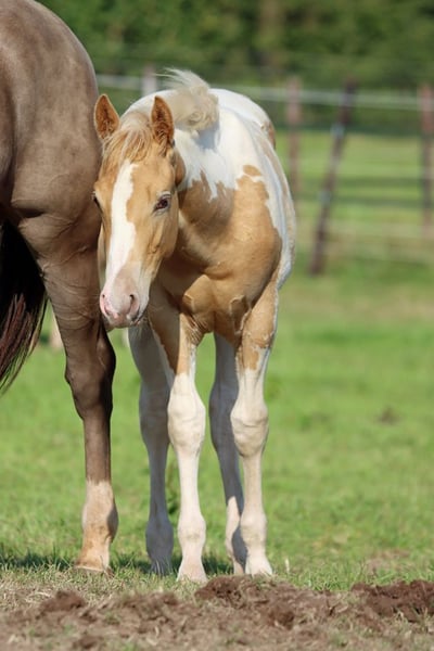 CHEYENNES ELDORADO Gold Champagne Tobiano APHA Wallach Geboren: 12.04.2024 Engrösse ca 153 cm 7 Panel N/N ee aa CHch Tt