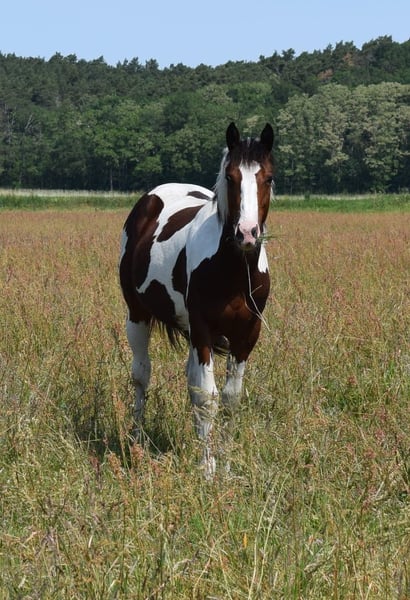 **Sales Advertisement: Paint Horse Gelding** For sale is a beautiful Paint Horse gelding from the year 2022. **Features:** - Breed: American Paint Horse - Gender: Gelding - Year of Birth: 2022 - Color: Bay Tobiano - Height: 1.50 m Smoke impresses with his friendly nature and his really beautiful markings. He is ideally suited for recreational riders looking for a versatile partner. Smoke has grown up in a herd environment on large pastures with us. He is well-mannered, knows the basics of groundwork, and is ready to be further trained. If you are interested or need more information, please feel free to contact me. Viewings are possible by appointment.
