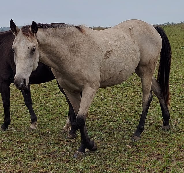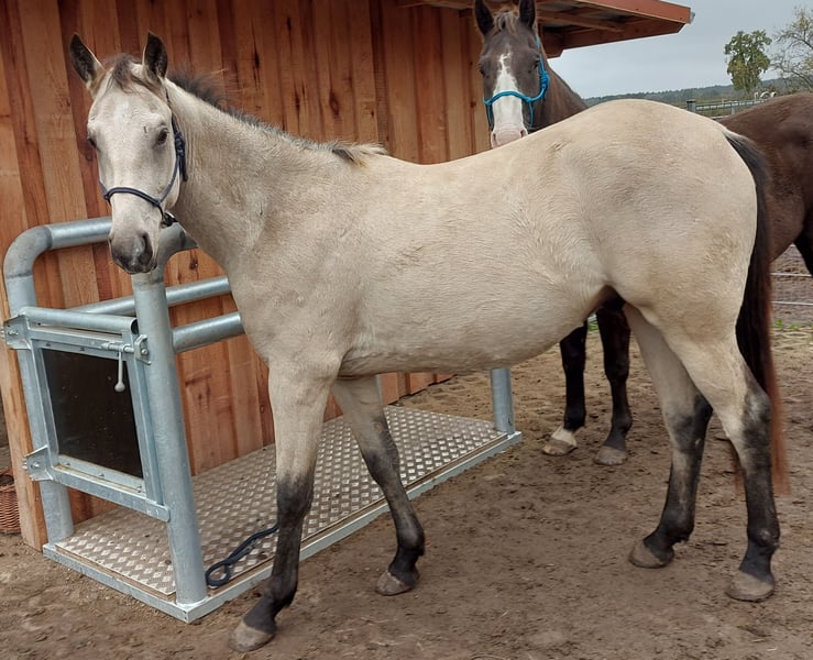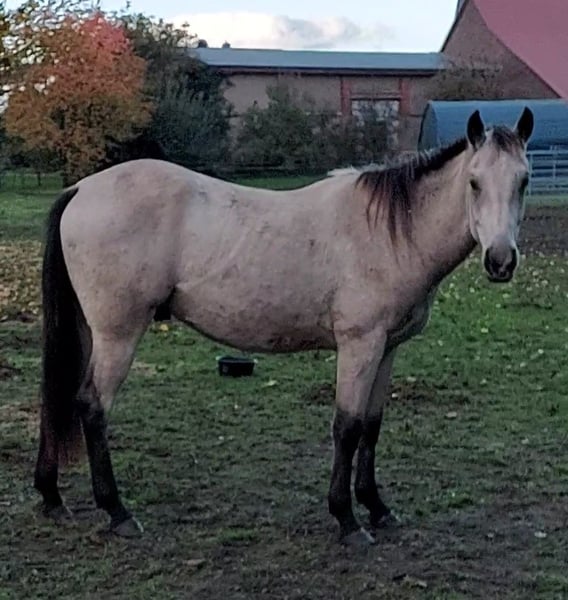 For sale: Young Paint Horse Gelding – Perfect for Western Enthusiasts! We are offering a beautiful Buckskin Paint Horse gelding, born in April 2023. Standing approximately 15.5 hands, he is ideal for riders seeking a versatile and well-rounded horse. The gelding is still quite young and untrained for his age! His friendly, human-oriented nature and calm, balanced temperament make him a wonderful companion for the whole family. He is already accustomed to being tied, groomed, and is halter-trained. He stands very patiently for the farrier and has already successfully completed his first trailer training with great patience. He is healthy, free of vices, regularly wormed, and vaccinated. He is kept in a herd of four geldings in an open stable environment and is low in the hierarchy. Future stabling in individual boxes is not desired. Buy directly from the breeder! Our Red Color Ranch is located in southern Mecklenburg. We have been successfully breeding pleasant leisure horses that are also suitable for sport for many years. Our focus is on the raising, training, and education of foals and young horses. All our horses live naturally on large pastures with open stalls and are handled daily. The foals stay with their dam until reaching sexual maturity, after which the colts are moved into a gelding group. The mares remain in the original herd. This method of upbringing produces well-socialized horses that are clear-minded and balanced. During daily handling, the foals learn to tie, lead, give hooves, and accept the farrier. Only at three years old do they begin their comprehensive training for riding, starting at age four at the earliest. If interested, I am happy to provide further information (only by phone) and arrange a viewing. This special horse is waiting to inspire its new owner!