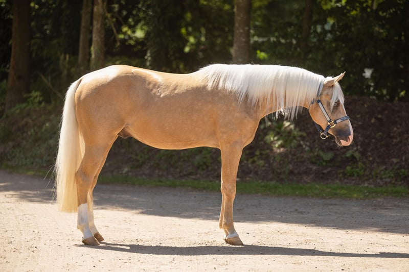 Zum Verkauf steht dieser bildhübsche Paint Horse Wallach, geboren im Mai 2022 mit einem Stockmaß von ca. 147 cm. Er ist ein Palomino mit zwei blauen Augen und überzeugt durch seine tolle Farbe, sein gutes Fundament, seinen großrahmigen und korrekten Körperbau sowie seine ausdrucksstarken Grundgangarten. Er ist gesund, geimpft und entwurmt, schmiedefromm und derzeit hinten beschlagen. Im Umgang zeigt er sich brav, entspannt, freundlich und menschenbezogen. Er ist cool, nicht schreckhaft, besitzt einen lieben Charakter und hat sichtbar Freude daran, Neues zu lernen. Er wurde spät und schonend angeritten und kennt Bodenarbeit sowie die Arbeit an der Doppellonge. Durch seine erstklassige Abstammung ist er sowohl für den Turniersport als auch als Freizeitpartner interessant und verspricht bei weiterer Förderung ein sehr gutes Sportpferd zu werden. Gesucht wird ein Platz, an dem er weiter gefördert und geschätzt wird.