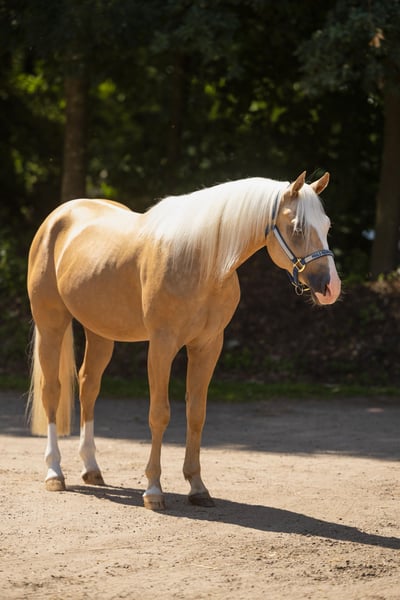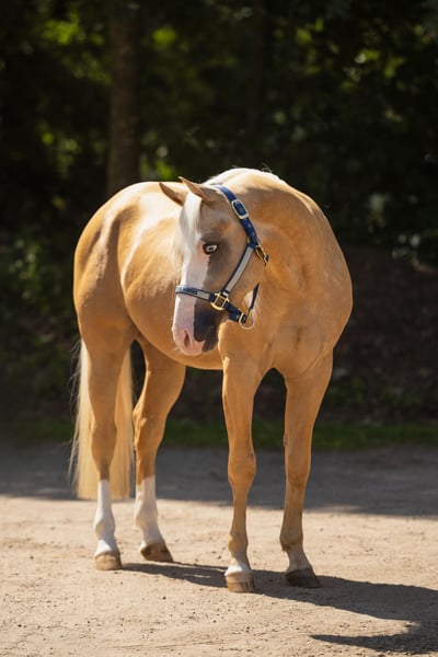 Te koop aangeboden: deze prachtige Paint Horse ruin, geboren in mei 2022, met een stokmaat van ongeveer 147 cm. Hij is een Palomino met twee blauwe ogen en overtuigt door zijn mooie kleur, zijn goede fundament, zijn grote en correcte bouw, en zijn expressieve basisgangen. Hij is gezond, gevaccineerd, ontwormd, smederijfijn en momenteel achter beslagen. In omgang toont hij zich braaf, ontspannen, vriendelijk en mensgericht. Hij is rustig, niet schrikachtig, heeft een lieve aard en geniet zichtbaar van het leren van nieuwe dingen. Hij is laat en voorzichtig aangelegd en kent grondwerk en werk aan de doppellonge. Dankzij zijn uitstekende afstamming is hij zowel interessant voor de wedstrijdsport als voor de recreatie en belooft hij bij verdere ontwikkeling uit te groeien tot een zeer goed sportpaard. Een plek waar hij verder kan worden gestimuleerd en gewaardeerd, wordt gezocht.