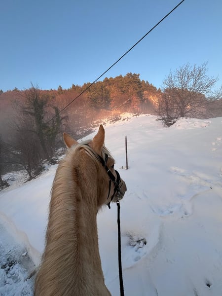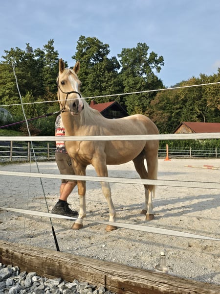 Schöner 3,5-jähriger Wallach mit großem Potenzial, seit 3-4 Monaten im Reittraining. Er braucht noch etwas Arbeit, zeigt aber viel Perspektive. Er kennt die Arbeit in der Arena sowie Ausritte, ist gesund mit kräftigen Beinen und Hufen (Barhuf). Sehr freundliches Wesen, unproblematisch im Herdenverband.
