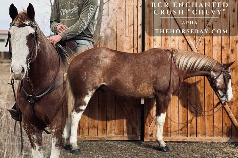 Registered APHA Gelding | 16.1 Hands | Built • Broke • Ready to Show or Go Trail “Chevy” is a striking registered APHA gelding standing a solid 16.1 hands, built like a tank with textbook conformation, strong feet, and an exceptional mind to match. His presence is as powerful as his pedigree — this is a gelding bred to impress and trained to perform. Chevy was successfully shown in walk/trot and in-hand classes as a two-year-old, and he’s since developed into an incredibly well-rounded mount with the training and talent to compete at higher levels. In the arena, he’s a dream to ride — effortlessly moving through walk, jog, and lope with flowy transitions and natural self-carriage. His stop is smooth, his turns on the haunches are balanced and correct, and his handle is light and responsive. But Chevy isn’t just an arena horse — he’s been exposed to plenty of real-world situations and shines just as bright out on the trail. From heavy traffic to bikes, dogs, strollers, and chaotic urban scenes, nothing rattles him. He crosses water, tarps, and bridges, and confidently tackles whatever you point him at. Whether he’s cruising through the countryside or navigating the bustle of town, he stays calm, focused, and willing. This is a young gelding with the kind of foundation most riders dream of — broke, exposed, trained, and ready to go in just about any direction. Whether you’re headed to the show ring, looking for a trail partner, or want a versatile ranch prospect, Chevy checks every box with style.