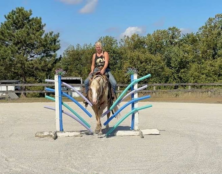 "AVAILABLE ON ONLINE HORSE AUCTION AT www DOT MagicHorseAuction DOT com BIDDING OPEN NOW thru TUESDAY | October 14TH! - BUY IT NOW AVAILABLE! *Final price will be determined on auction site* CONSIGNOR CONTACT INFO: Roni Renee Turner 610-806-2613 LOCATION: Narvon, PA "“Freckled Intoxication” aka “Malibu” is a 5yr old, 15hh, APHA gelding, with a lush mane, beautiful palomino coat, and chocolate freckles all over his body. Mali is safe, reliable, and Mr. Personality! He is an in your pocket type of dude with loads of character. Malibu can do it all, and he is ready to be your best friend! Do it all, and do it safely! In the barn, he has zero bad habits. He can live in or out, goes out with others and can live alone. He has no bad stall habits and is quiet while stalled. He stands on the cross ties to be groomed, tacked, bathed, etc. He straight ties to the trailer to get ready. Mali is a happy go lucky guy, and loves attention. He is safe with kids and dogs running around him, cows standing with him, you name it. He is totally unbothered and knows how to take a joke! He is an easy keeper with a simple diet, no maintenance and no supplements. He is good for the vet and farrier, and can wear shoes or go barefoot. He walks up to you in the pasture and is easy to catch. He likes being around people and will make you giggle with his silly personality. Malibu loves trail riding. He will lead, follow, go alone and in groups. He has a nice steady walk pace, and will trail ride on the buckle all day long. He is safe with traffic, bikes, strollers, wildlife and doesn’t mind my dogs trailing his heels. He crosses logs, rocks, water, and will wait for you at the porta potty. He would make a great camping partner or fox hunter. He even has the personality of a husband horse. He is always up for a good adventure, pack your saddle bags full of beer and go enjoy your ride. Malibu rides western, english, and bareback. He is soft in your hands and rides in a simple snaffle, or even a halter and lead rope! His gaits are comfortable and uphill. He has smooth transitions and listens nicely to your cues. He is a blast to ride, and the same horse every ride. Mali is the safe horse that your kids can go jump on in the pasture and he will take care of them. In the ring, Mali will walk, trot, canter, knows his leads, and loves to jump. He will ride collected or on the buckle. Malibu backs up nicely, pivots, side passes, neck reins, moves off of your leg, and you can ask for a big whoa, or bring him down smoothly through the gaits. He shows a lot of potential for ranch classes, low level reining fun stuff, cows, western dressage and more. He trots nicely through ground poles and is careful of where he puts his feet. He will ride off of your seat, or voice commands. Mali is forgiving and doesn’t get upset if his rider is off balance. He is just always a happy guy and enjoys every ride. Malibu enjoys jumping too! He will pop over tiny cross rails gently, or jump larger jumps and cross country fences too! He is a natural over fences and is very good with distances. He does not get hot or forward while jumping. You’ll see how honest he is in the clips of my pup jumping the cross country jumps with us. Malibu is a beautiful mover, and could go dabble in low level dressage, eventing, or maybe you just want a horse that will take care of you while you work on yourself! No matter what direction you want to take him in, he is happy to do it, or go have fun and do IT ALL!!!!! Malibu is registered with APHA. He is sired by “Intoxication” who is a beautiful stallion who has points in halter and western pleasure, who goes back to “Mighty Awesome”, a stallion who was known for his championship breeding and impact on APHA. On Mali’s bottom side, back in his lines you will see “Sonny Dee Bar”, a famous stallion who is a leading sire of show horses, known for producing great dispositions and natural talent. He was inducted into the AQHA Hall Of Fame in 2003. Malibu’s breeding speaks for itself, and has created an amazing all around boy. No matter what you are looking to do, Malibu is ready to be your forever partner and do it with you. I have really enjoyed my time with this boy. He is currently set up to head in absolutely any direction. Not to mention, he is easy on the eyes! If Malibu sounds like a good match for you, please don’t hesitate to reach out for further information!!! Shipping can be arranged anywhere.