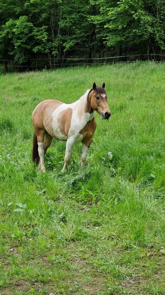Z ciężkim sercem postanowiłem oddać mojego wałacha paint w troskliwe ręce! Niestety, brakuje mi na niego czasu. Jest bardzo przywiązany i będzie partnerem na całe życie! Sam go doszkoliłem i zna chód, stęp, (galop). Podstawowe ćwiczenia nie są mu obce. W terenie jest grzeczny! Nie potrafi więc zbyt wiele. Próba jazdy na nim jest trochę trudna do zorganizowania, ale postaramy się to umożliwić (brakuje siodła)! To absolutny skarb, jeśli chodzi o integrację z stadkiem! Nie jest koniem do boksu, preferowałbym dla niego wypuszczanie na padok, ponieważ od małego jest do tego przyzwyczajony. Gdy zdobędzie zaufanie, jest prawdziwym teamplayerem! Na razie nie jest odpowiedni dla początkujących, ponieważ nie potrafi jeszcze wiele i nie jest jeszcze w pełni ugruntowany w pracy. Jednak przy regularnej pracy z nim nie będzie z tym problemu! Badanie przedzakupowe nie stanowi żadnego problemu, pod warunkiem pokrycia kosztów przez kupującego! Warto go poznać!