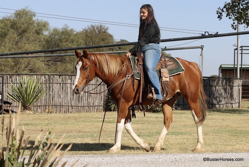 ONLINE AUCTION Place your bids at www.PlatinumEquineAuction.com Starting Bid $3500 Auction ends November 24th, 2024 Need a new saddle? Check out White Rock Saddles on our website or Facebook! Champ is 6 years old and 15.1hh just the right age, just the right size – and has the loud flashy markings that everyone’s looking for! He is extremely smooth gaited and uncomplicated to ride, but still fun! He has a nice handle, a big stop, and travels really cute too! He would be fun to take to the local hunter/jumper shows, or the entry level dressage tests. He trail rides great, he absolutely loves going into town and being around lots of traffic and commotions and things to see! He has been tons of miles checking fences and checking cattle, and he is very comfortable out alone as well as in a group of horses. He’s even been used in the cutting pen, as a turn back horse at a cutting facility, and he was the resident “non-rider” mount. Anyone can get along with this sweet guy he has a ton of personality and he’s always the first one up to you in the pen. He loves attention and if he’s out in the pasture with a group of horses he’ll come up to you versus hanging out with the horses he loves scratches loves cookies and loves attention. He is great in the barn, stands tied quietly, he is easy to saddle and bridle, stands flat-footed and still for mount and dismount, he hops right on the trailer, and hauls quietly too. Champ was just shod this week, his teeth were also done by an equine dentist earlier this year, at that time he also had his ears preemptively treated for ticks, and he was also power pack wormed. He will arrive at her new home up-to-date and ready to go to work! Please call anytime for more information at 214-605-7174 Champ is located in Weatherford, TX – one hour from Dallas / Fort Worth International Airport. He is an easy day trip or fun overnight trip to come try out, from anywhere! We are experienced knowledgeable sellers and we can help with quickly arranging affordable shipping to any buyer’s location – we have experience shipping horses worldwide – including regularly to Hawaii, Canada, Mexico, Europe, and South Africa. Go to our Facebook page Buster Ranch and check our website for buyer reviews. ONLINE AUCTION Place your bids at www.PlatinumEquineAuction.com Starting Bid $3500 Auction ends November 24th, 2024 Need a new saddle? Check out White Rock Saddles on our website or Facebook!