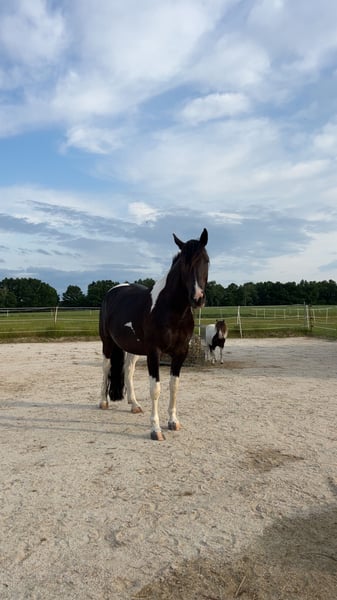 With a heavy heart, I am selling my 8-year-old Paint Horse gelding, Docs Indian Dakota (approximately 15.6 hh), by BMS Docs Indian Hunter, due to health reasons. He is truly a horse from the heart, an honest and reliable companion for leisure riding who will do anything for his owner. Very affectionate, friendly in handling, and always eager to please his rider. A horse you simply feel comfortable with ❤️ Whether for trail riding, groundwork, or relaxed time in the stable, he handles everything calmly and remains friendly and composed. Perfect for leisure riders seeking a loyal partner for life. Age: 8 years Gender: Gelding Breed: Paint Horse Height: approx. 15.6 hh Temperament: honest, gentle, reliable, people-oriented Use: leisure, all-rounder Accessories can be included at an additional cost (Euroriding Diamant dressage saddle, Passier Blue bridle, Bucas blankets, etc.). Only to caring and responsible hands. Not a distressed sale. I am looking for a 5-star home where he will lack for nothing.