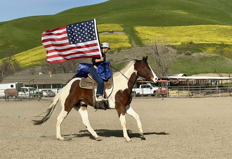 "AVAILABLE ON ONLINE HORSE AUCTION AT www DOT PlatinumEquineAuction DOT com BIDDING OPEN NOW thru SUNDAY | FEBRUARY 15TH! *Final price will be determined on auction site* CONSIGNOR CONTACT INFO: Cheyenne Rey 831-537-8746 LOCATION: Bitterwater, CA Calypso is a truly gorgeous and uniquely marked 8-year-old Paint gelding standing a solid 16 hands with a presence that turns heads and a personality that wins hearts. This big, handsome boy is the definition of a puppy dog — friendly, affectionate, and always wanting to be part of whatever is going on. He is very much an “in-your-pocket” type who loves attention and will happily greet you at the gate, ready for his next adventure. Calypso is a joy to have around the barn. He gets along wonderfully with other horses, is easy to catch, and is polite and patient to handle. He stands quietly in the cross ties for grooming and tacking, enjoys baths, and is easy to clip. He is good with his feet, loads and hauls well, and has the kind of steady, uncomplicated demeanor that makes him a pleasure to be around. Under saddle, Calypso is laid-back, curious, and confident. He has been extensively ridden out on coastal trails and absolutely loves the beach, taking new environments and scenery completely in stride. He has been exposed to a wide variety of situations and remains calm and level-headed, never getting worked up or reactive. He is comfortable around flags, tarps, and other obstacles both near him and on him. Calypso has a very appealing “whoa-than-go” mindset. He is happy to mosey along with friends, head out solo, or just enjoy a relaxing ride wherever you point him. In the arena, he knows his leads, travels out nicely, has a good stop, and will walk, trot, and lope pretty circles with ease. He is straightforward and pleasant to ride, making him easy for a wide range of riders to get along with. He can also sit with time off and come right back into work without fuss. Calypso is an extremely nice young gelding with the looks, brain, and temperament to go in many directions. Whether you’re looking for a dependable trail companion, a quiet arena partner, or a versatile horse to continue developing, Calypso is the kind that makes every ride enjoyable and every barn visit better. He is located in Bitterwater, CA. For more info contact Cheyenne Rey 831-537-8746.
