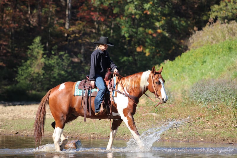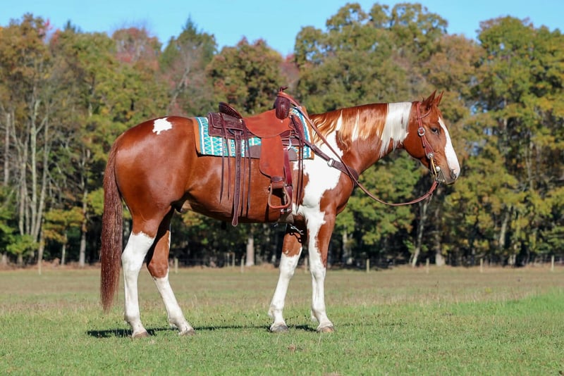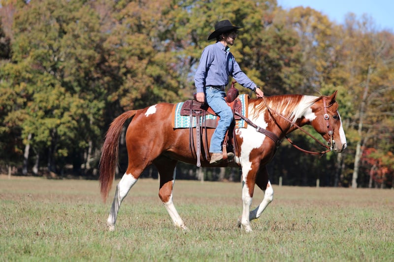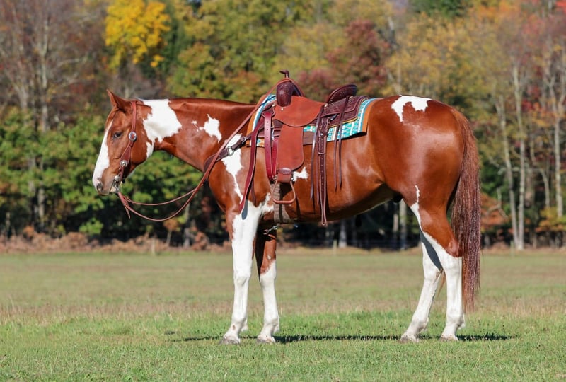 ⚜️ 𝓽𝓱𝓮 𝐇𝐨𝐫𝐬𝐞𝐦𝐚𝐧'𝐬 𝓢𝓱𝓸𝔀𝓬𝓪𝓼𝓮⚜️ Happening now thru MONDAY | DECEMBER 1st - Available EXCLUSIVELY on HorseBid's website! For more details and to register visit: www.Horsebid.com CONSIGNOR CONTACT: Rolling Meadows Farm 724-664-5327 LOCATION: Morriston FL BREED: APHA REGISTERED: Yes REGISTERED NAME: Grans Diamond G COLOR: Sorrel and white HEIGHT: 16.2 AGE: 7 GENDER: Gelding Introducing Grans Diamond G, Or as we like to call him Big G! Big G is an eye catching sorrel and white Tobiano paint gelding with unique markings and a beautiful build! He is registered with the American Paint horse Association and is 7 years old. He is a thick built boy made to carry any sized rider any where they want to go. He has great legs and feet that are built to last. Big G has been used as a ranch horse in South Dakota where he did all aspects of ranch work. He is very very well broke any level of rider will appreciate him. He has a soft one hand easy neck rein, he gives nicely to leg pressure, side passes both directions easily. Walks on a loose rein and Trots smooth and collected. He will pick up both leads at a lope and has a nice stop and back up. Big G will open and close gates, stand to be mounted and go all day on the trails! He has spent most of his time out on the trails or working the ranch moving cattle but he is also a fantastic arena horse he would make a nice lesson horse or even show horse. Big G has a great mind and a willingness to learn. He could go western or English. When it comes to ground manners Big G is a kind respectful boy. He leads nice and quiet and is friendly. He picks up all 4 feet with ease and baths, tacks, loads and stand tied. I have taken Big G on many miles of trails alone or with other riders and he’ll lead and follow. He goes thru the mud over the high logs and rough terrain with ease. Big G has a current passed Veterinarian Health Exam, Coggins and vaccinations. Please contact me if you have any more questions regarding Big G! LeeAnn -724-664-5327 thank you and have a wonderful day!