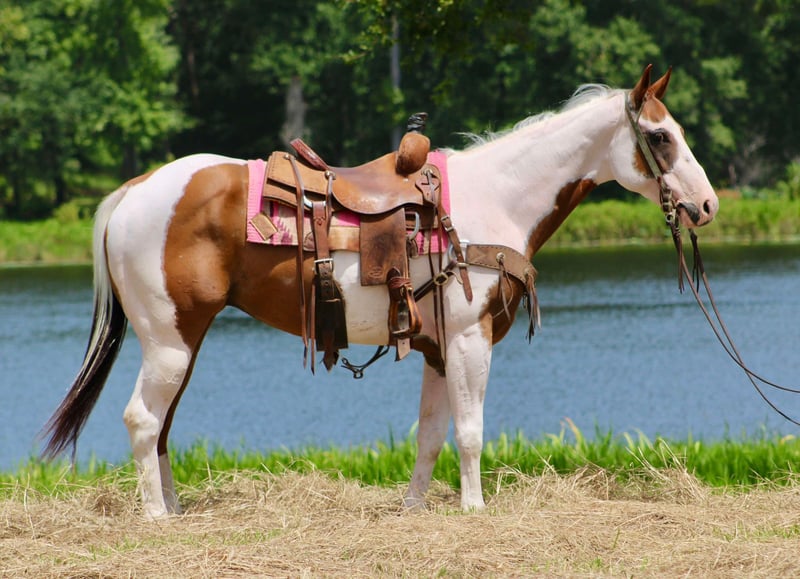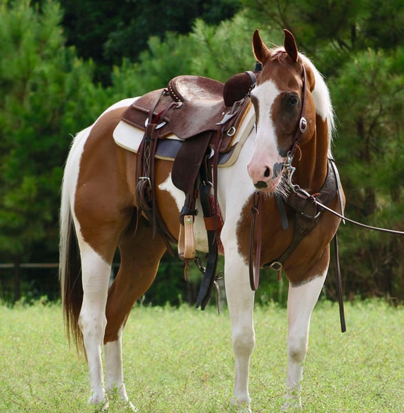 ONLINE AUCTION Place your bids at www.PlatinumEquineAuction.com Starting Bid $3500 Auction ends August 18th, 2024 Need a new saddle? Check out White Rock Saddles on our website or Facebook! Wishbone is a super flashy paint gelding. He is the perfect age of 7 years old. He stands 14.3 hands tall. Wishbone has some very unique markings and he definitely stands out in a crowd! Wishbone is a seasoned trail horse, he’s been used around cattle and tracking the dummy. He also has done many charreadas as a teenage boys mount. He has been ridden all over the place and is traffic safe. He is used to dogs being underfoot. Been around all forms of farm equipment. He is absolutely willing to do whatever is asked of him honestly and tries very hard to please. Wishbone has a wonderful handle to him, he one hand neck reins and has a big stop. He has a beautiful slow lope that you could ride all day! Wishbone is good for baths, the shoer, loading and unloading in the trailer and is extremely easy to catch. He takes a saddle and headstall well. Wishbone is safe and gentle for most any level of rider. He is so much fun to ride and we have really enjoyed him. Please do not hesitate to call or text Alicia Darling 903-840-8010 with any questions. Located in Willis Point, TX. ONLINE AUCTION Place your bids at www.PlatinumEquineAuction.com Starting Bid $3500 Auction ends August 18th, 2024 Need a new saddle? Check out White Rock Saddles on our website or Facebook!