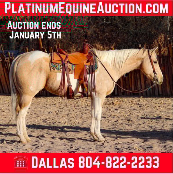 ONLINE AUCTION Place your bids at www.PlatinumEquineAuction.com Starting Bid $3500 Auction ends January 5th, 2024 Need a new saddle? Check out White Rock Saddles on our website or Facebook! Applejack is a 7 year old grade paint gelding standing 15hh. This gorgeous gelding is the definition of gentle, safe, reliable, and trustworthy. Applejack is never in a rush to go anywhere and is the more woah than go type but can have some pep in his step when asked. Although Applejack doesn’t have the fanciest handle, he will ride down the trail with ease and not a care in the world! Applejack is easy to catch, and good to groom, saddle, bridle, bathe and shoe! If you’re looking for a family friendly, laid back, safe gelding look no further, Applejack is your man! Applejack will come with a clean coggins and health as well as a lameness exam. Transport can easily be arranged anywhere in the US!!! Located in Camp Verde, AZ Contact D/C Equine Services Dallas 804-822-2233. ONLINE AUCTION Place your bids at www.PlatinumEquineAuction.com Starting Bid $3500 Auction ends January 5th, 2024 Need a new saddle? Check out White Rock Saddles on our website or Facebook!