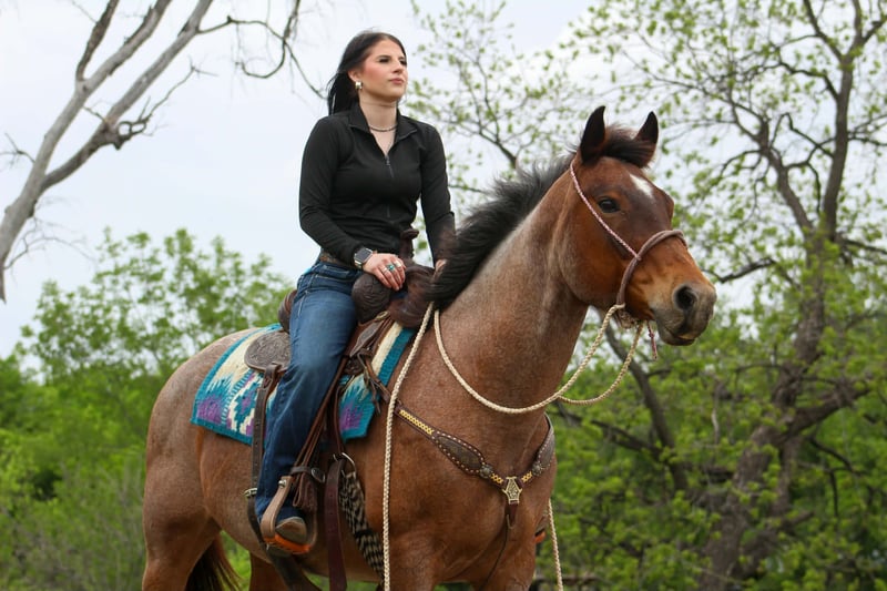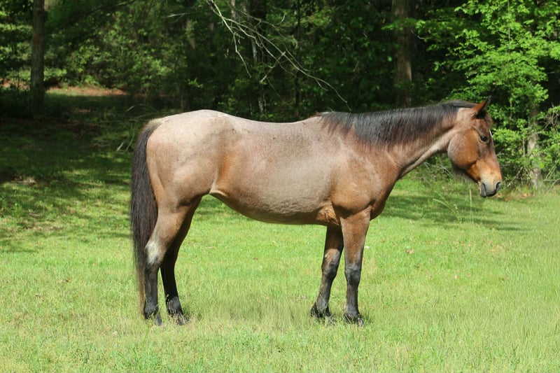 "AVAILABLE ON ONLINE HORSE AUCTION AT www DOT PlatinumEquineAuction DOT com BIDDING OPEN NOW thru SUNDAY | APRIL 19TH! *Final price will be determined on auction site* CONSIGNOR CONTACT INFO: MW Horses 254-434-8650 LOCATION: Poolville, TX Chili is a 10 year-old beautiful bay roan mare, standing at 14.2 hands tall. She will catch anyone’s eye anywhere you decide to take her with her stunning color. She would be a great family horse as that’s what she’s been her whole life. Chili was raised and trained by her owner. She is a one owner horse. There grandkids have rode her mainly. She’s been many miles on trails all over. She is a safe horse looking for a lifelong friend. Chili is more whoa than go but if you ask her to trot and lope she will do it for you and stop when you ask! She'd rather go slow everywhere. Chili goes through anything you point her to go through or over. Rides out alone or in a group. Very good in town and through traffic. She can sit forever and still ride off with no funny business. If you can sit up there and hold his reins you and her will get along! Chili has absolutely no buck, rear, or kick! Loads like a champ and backs out great out of the trailer. Chili is a reliable pretty girl, making her a great addition to any family! Come see her for yourself or we can schedule a FaceTime to meet him! Call or text Makayla with MW Horses at 254-434-8650. Need hauling? We got a list of reliable haulers around the US!