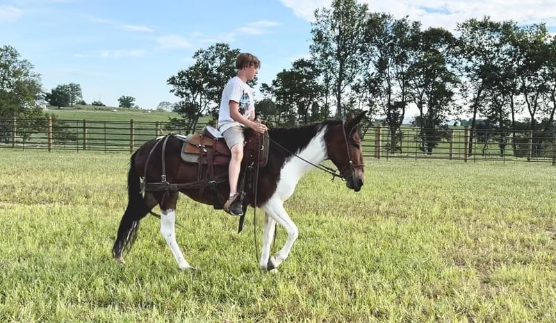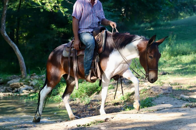 ONLINE AUCTION Place your bids at www.PlatinumEquineAuction.com Starting Bid $3500 Auction ends September 15th, 2024 Need a new saddle? Check out White Rock Saddles on our website or Facebook! Vegas is an 8 year old, 14.1 hand hand Molly mule. Her unique bay and white color is sure to be the talk of the town, and there won’t be another one like her out and about! We have had all levels of riders on Vegas. She rides the best on a full drape with a nice, level head. She prefers to walk and jog, but does lope happily across the pastures and fields. Vegas does all natural obstacles on the trails. She loves the water, and goes nicely down steep banks and hills. She walks over logs. She rides out alone or with the group. Vegas rides quietly with an experienced rider and takes care of them on the trails. We have taken her downtown to ride and she does well with the hustle and bustle of the city. She is a great ranch mule. She’s comfortable around cattle riding through the herd checking them daily. She will sort pairs, load trucks, and rope/doctor cattle. When it comes to work and riding, there isn’t much she can’t do. Vegas is good to take on camping tie out to the high line. Her good looks and thick hair are not what you see on mules often, but Vegas has it! For more information, please call Sammi Waugh 704-798-5497 Located in Brooksville, KY. ONLINE AUCTION Place your bids at www.PlatinumEquineAuction.com Starting Bid $3500 Auction ends September 15th, 2024 Need a new saddle? Check out White Rock Saddles on our website or Facebook!