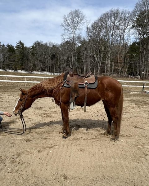 "AVAILABLE ON ONLINE HORSE AUCTION AT www DOT PlatinumEquineAuction DOT com BIDDING OPEN NOW thru SUNDAY | APRIL 26TH! *Final price will be determined on auction site* CONSIGNOR CONTACT INFO: Emily Wilmot 774-766-9910 LOCATION: Middleboro, MA ❤️Be Mine❤️ Be Mine “Heart” is an 11yr old 14.2h chestnut grade QH mare. She is cute and compact- the perfect size for both kids and adults. She is a complete love. meets you at the gate with a nicker every time. She could be handled by anyone on the ground. Heart has been a trail horse her whole life. She enjoys the slower pace, stop and smell the roses kind of rides. She will ride in the arena, but is very much a kick ride. She has a very comfortable trot and a great "woah". We have ridden her English and Western. She's even jumped small jumps. She is pretty much unflappable. I could see her being a versatility or therapeutic mount. She’d also be a wonderful trail partner. Heart is barefoot and not on any supplements. She’s happy living in the run in shed. Crossties, stands to be groomed and tacked. She does have an old , cold scar on her left hind cannon that doesn’t seem to affect her. Come meet this sweet girl! Contact Emily Wimot at 774-766-9910 for more information.