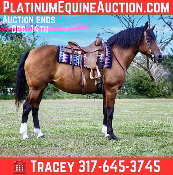 ONLINE AUCTION Place your bids at www.PlatinumEquineAuction.com Starting Bid $3500 Auction ends December 14th, 2025 Need a new saddle? Check out White Rock Saddles on our website or Facebook Broke, honest, and reliable are the first words that come to mind when I think about… Taffy! 10 years old, stands 14.2 hands tall, and an stout/thick made mare. Easy to catch, has great ground manners, loads/hauls great, and good around other horses. Not marish what so ever. Taffy has a sweet personality, and THAT big kind eye, and is always 100% gentle! Not only is Taffy gorgeous, but she is BROKE! One handed honest neck rein, stays behind the bridle, rides off your seat and legs. She walk, trots, and lopes nice circles, picks up both leads and has smooth lead departures, and has a nice stop. Taffy is a seasoned all-around type of horse! She has ridden thousands of miles in the pasture, outside, and on the trails and a ton of experience in the arena. She has done her fair share of ranch chores also. She is unbothered in a busy town, with lots of traffic, and goes down rough trails. She is extremely sure footed on tough rocky trails, and will cross anything you point her at. Quiet and safe in any atmosphere! If you are looking for a horse that you can pull up and ride once a week or once a month, Taffy is your girl! Trustworthy and safe every time you saddle her up. I truly believe anyone will be able to get along great with her! Located in Conifer, CO. Contact Tracey Vinciguerra 317-645-3745 for more info. ONLINE AUCTION Place your bids at www.PlatinumEquineAuction.com Starting Bid $3500 Auction ends December 14th, 2025 Need a new saddle? Check out White Rock Saddles on our website or Facebook