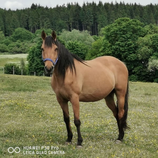 HALLO, Ich Beende meine Zucht !!! Das ist eine super liebe und tolle Zuchtstute ,,,,sie hat mir immer hübsche und gute Fohlen gebracht !!! Sie ist nicht geritten daher verkaufe ich sie nur als Zuchtstute,,, wenn sie das erste Fohlen Verkaufen, haben sie den Preis der Stute schon raus,, Hallo,,,,,,aber ich werde sie nochm,al zu einem anderen QURTER HORSE HENGST BRINGEN , und verkaufe sie auch gern tragen d !!!!!! 2 Bilder sind auch vom Hengst dabei ,Papiere gehen nur über watts ap, leider hat sie kein Papier ist aber eine Quarter Stute, für alle weiteren Fragen gern anrufen 0160 8038660+