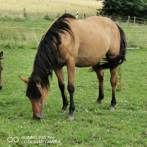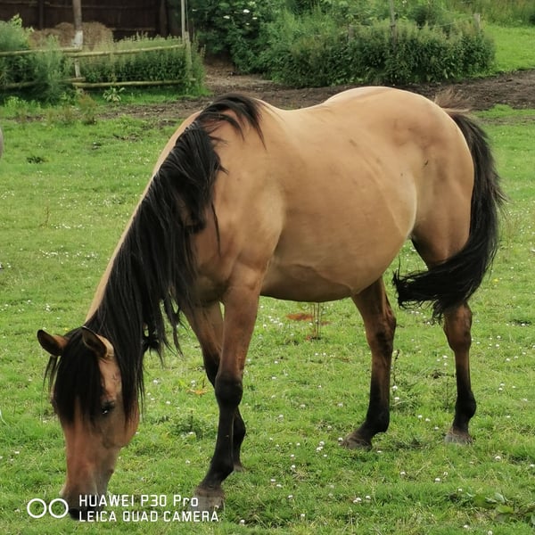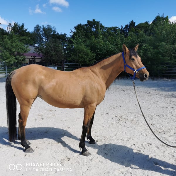 WITAM, niestety nie ma lepszych zdjęć, bo nie chciałam sprzedawać tej klaczy, ALE ze źrebakami są ładne zdjęcia do obejrzenia tutaj ! Kończę moją hodowlę !!! To jest super urocza i świetna klacz hodowlana ,,,, zawsze przynosiła mi ładne i dobre źrebaki !!! Nie jest jeżdżona, więc sprzedaję ją tylko jako klacz hodowlaną,,, kiedy sprzedajesz pierwszego źrebaka, masz już cenę klaczy,,, Oczywiście można ją również jeździć po treningu. niestety nie ma papieru, ale jest ćwiartką klaczy, w przypadku dalszych pytań prosimy o kontakt pod numerem 0160 8038660