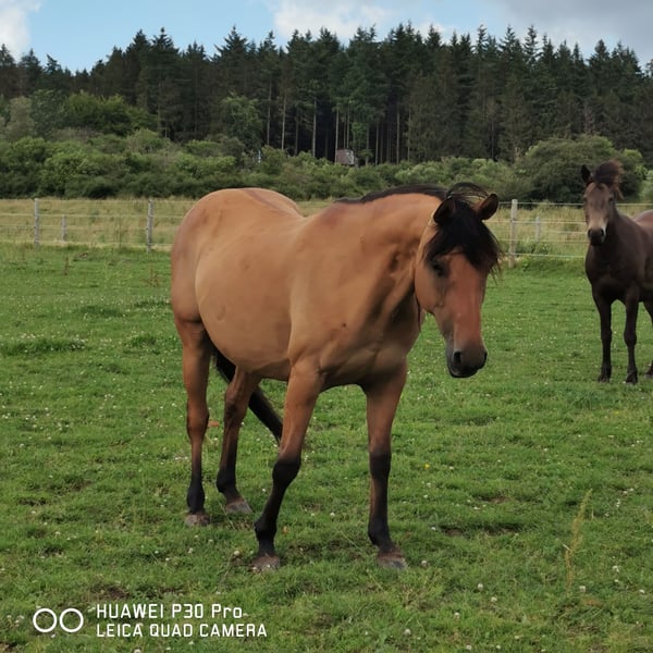HELLO, unfortunately no better pictures, because I did not want to sell this mare, BUT with the foals are nice pictures to see here ! I finish my breeding !!! This is a super lovely and great broodmare ,,,,she has always given me nice and good foals !!! She is not ridden so I only sell her as a broodmare,,, when you sell the first foal, you already have the price of the mare out,, Of course she can also be ridden with training. unfortunately she has no paper but is a quarter mare, for all further questions please call 0160 8038660