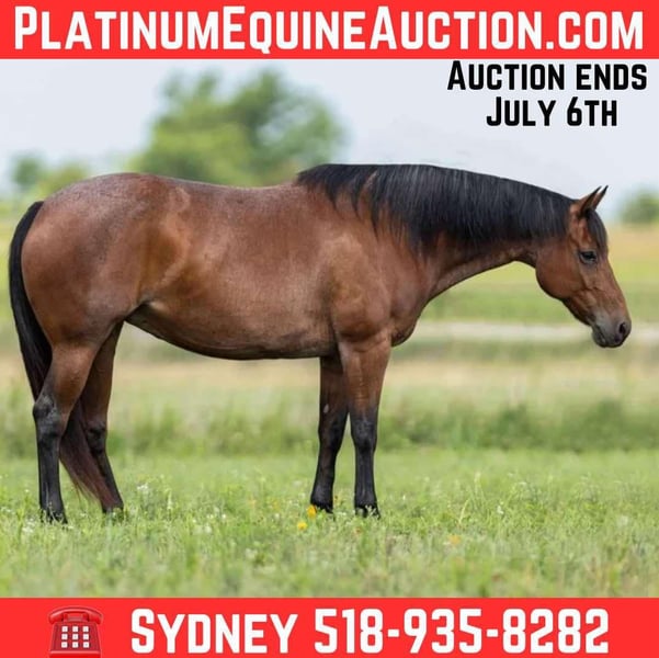 ONLINE AUCTION Place your bids at www.PlatinumEquineAuction.com Starting Bid $3500 Auction ends July 6 2025 Need a new saddle? Check out White Rock Saddles on our website or Facebook! Meet Moxie— a 2015 AQHA bay roan mare with all the shape, color, and demeanor everyone wants. She’s built like a brick house— wide, stout, and strong— with a deep girth, powerful shoulder, balanced wither, and excellent bone. Her kind, honest disposition makes her a joy to ride and handle and her pedigree— a great granddaughter of Peppy San Badger— adds that extra value for anyone looking to ride or raise quality stock. Willing, kind, and honest— those are the words that sum Moxie up best. She has a great personality and is incredibly sweet to be around. She is not Mariah at all with people and is always the horse at our barn we can count on to just quietly do her job. While she may take a moment to warm up to new people, she does so quickly and is eager to please under saddle and on the ground. She is very food motivated (she’ll never turn down a cookie) and always happy to see you. Moxie is super broke and user-friendly. She walk-trot-lopes both directions on a loose rein, neck reins, and knows the word “whoa” very well. She has a balanced amount of go and rate—she’ll stride out if you ask her to, but she’ll also slow down to match your pace. I’d say she leans slightly more forward-moving, but still incredibly safe and sane. She’s been used to pony colts, help work cattle, and exercise green horses, and she takes every new task like she’s been doing it forever. You can bit her up in a big bridle or ride off in a halter and lead rope— it really depends more on the rider’s skill level than hers. One of the best things about Moxie is how well she does with time-off—I’ve given her several weeks off, swung a leg over, and rode off without a single issue. She picks up right where she left off, no funny business. Moxie can stand quietly for hours (no pawing), stands nicely for the vet and farrier, and enjoys being groomed and bathed. She is excellent in the arena, out on the trail, or just riding through the pasture. She’s been nothing but a joy in our program and has never given us a problem. She genuinely seems happy to be ridden and never pins an ear under saddle. She’s the barn favorite— everyone loves her, and I’ll be sad to see her go. Moxie is the type of mare who will shine in multiple avenues. Use her a trail horse, working ranch horse, broodmare, safe all-around riding partner, or even just a well-loved, pretty pasture pet. She is honest as the day is long, a pleasure to ride, and has the kind of mind that’s easy to trust. Whether you’re looking to raise some great foals, put miles on a safe mount, or just enjoy the company of a kind-hearted mare, Moxie checks all the boxes. For more information contact Sydney with Enchanted Equine at (518) 935-8282. I’d be happy to talk about Moxie all day long— don’t hesitate to reach out with any questions. Moxie is located in Granbury, TX and we are happy to help arrange shipping anywhere in the U.S. ONLINE AUCTION Place your bids at www.PlatinumEquineAuction.com Starting Bid $3500 Auction ends July 6 2025 Need a new saddle? Check out White Rock Saddles on our website or Facebook!