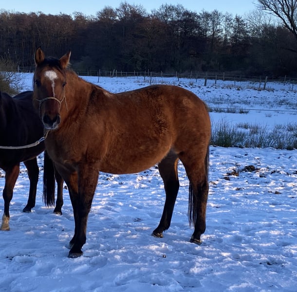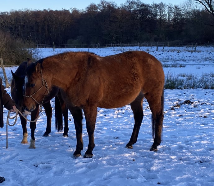 Aus gesundheitlichen Gründen muss ich leider meine schöne Stute verkaufen. Die Stute geht alleine vom Hof, ist Geländetauglich und ist nicht schreckhaft. Da ich das Reiten aufgeben muss biete ich die Stute komplett mit Zubehör an (Westernsattel, Trense und Halfter). Die Stute wurde auf der Little King Ranch in Brandenburg ausgebildet.