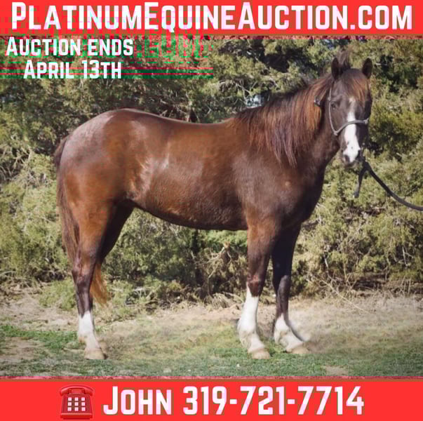 ONLINE AUCTION Place your bids at www.PlatinumEquineAuction.com Starting Bid $3500 Auction ends April 13th, 2025 Need a new saddle? Check out White Rock Saddles on our website or Facebook! Betty is a well-rounded 54-inch(13.2HH) dark brown Quarter Pony mare with a heart of gold. At 11 years old, she has proven to be a dependable and versatile pony, suitable for riders of all ages and skill levels. She is sturdy enough to carry an adult yet gentle and quiet enough for a child to enjoy. Betty is trained in both Western and English riding, making her a great fit for various disciplines. In addition to being a fantastic riding pony, she is also broke to drive single and is completely traffic safe, making her a wonderful option for those looking for a reliable driving pony. For the past three years, Betty has been used in a lesson program, where she has helped beginners gain confidence and develop their riding skills. She is patient, steady, and always willing to please, making her an ideal choice for families or anyone looking for a trustworthy and safe pony. She has no bad habits, is 100% sound, and has been in my care for the last four years, during which she has been nothing but a joy to own. She has been hauled all over from Palo Duro Canyon to Matzel Game Reserve in Iowa. Whether you’re looking for a lesson pony, a family companion, or a driving partner, Betty would make a fantastic addition to any home. Plenty of videos and pictures are available for those interested in seeing her in action! Located in Lisbon, IA. Call John McPhail 319-721-7714 with nay questions. ONLINE AUCTION Place your bids at www.PlatinumEquineAuction.com Starting Bid $3500 Auction ends April 13th, 2025 Need a new saddle? Check out White Rock Saddles on our website or Facebook!
