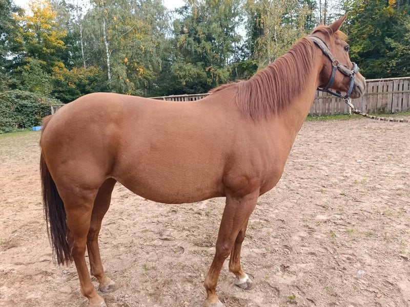 Location: Saarland Price: €1,000 VB Age: 12 years Height: approx. 1.55 m (15.1 hh) We are looking for a loving and permanent home for a sensitive Quarter Horse mix mare (12 years old) – ideally as a companion horse or for pampering and cuddling. About the mare: She was ridden by 13- to 14-year-old girls until about a year ago. She was always well-behaved in the terrain, only showing some temperament when cantering or if she was a bit stubborn – never dangerous, but with her own opinions. In the riding arena, however, she became increasingly stubborn, leading to the suspicion that back or nerve issues might be involved. Despite several physiotherapy treatments, no clear cause has been identified. Currently, she no longer has a riding partner, and riding with a Western saddle is not working, so she is being sold as unrideable for now. Perhaps this could improve with a gentle rider, an appropriate saddle, and patience – but nothing can be guaranteed. Character & Handling: A very sensitive, loving, and affectionate mare who seeks a calm, empathetic person. She is social and balanced with other horses once she has built trust. Haltering and bridling require patience and gentle handling – she can become nervous in hectic situations. She knows dogs and loves spending time with people who understand her. Health & Keeping: Generally healthy Back sensitive → currently unrideable No known chronic illnesses No Western saddle, no heavy rider Loves quiet herds and a harmonious environment Priority is the right home! Most important is a loving, patient, and experienced person who will give her a good life and allow her to simply be a horse. This is not an emergency sale – finding the right home is our top priority.