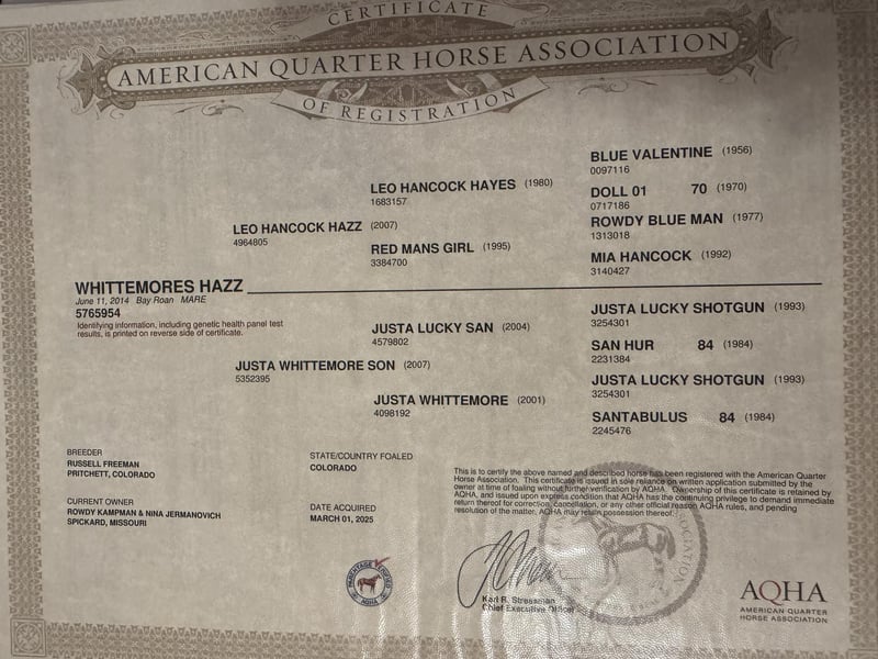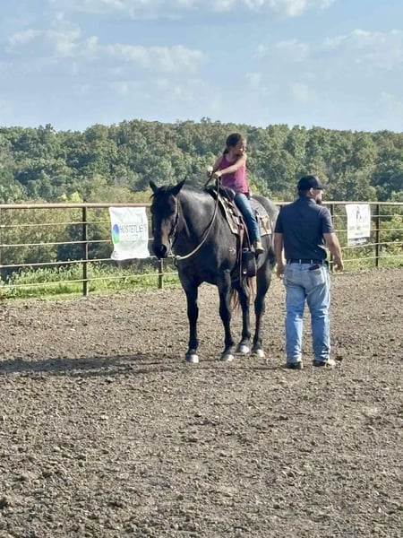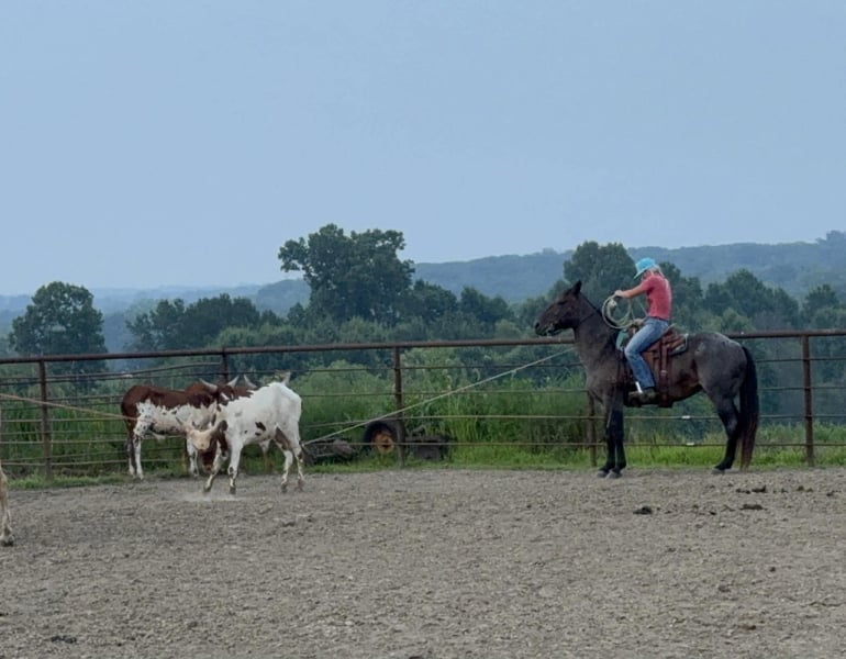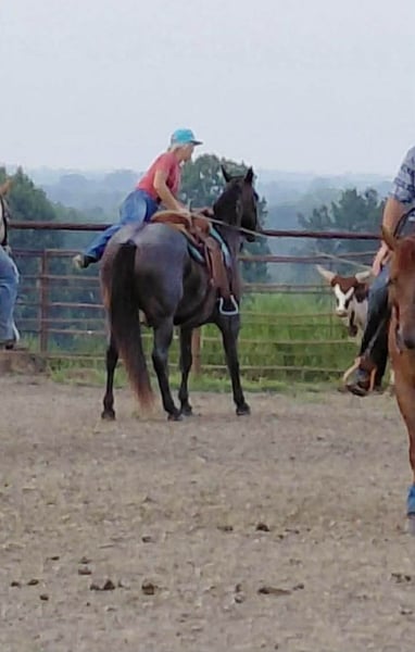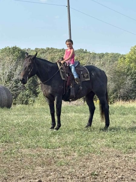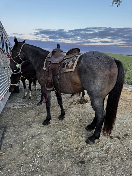 "AVAILABLE ON ONLINE HORSE AUCTION AT www DOT PlatinumEquineAuction DOT com BIDDING OPEN NOW thru SUNDAY | MAY 3RD! *Final price will be determined on auction site* CONSIGNOR CONTACT INFO: Nina Jermanovich 660-339-2394 LOCATION: Spickard, MO “Freya” – 2014 AQHA Bay Roan Mare | 15.2 Hands If you’re looking for a safe, solid, and eye-catching all-around mare, Freya checks all the boxes. Freya is a 15.2 hand, stout-made 2014 AQHA bay roan mare with the kind of build and presence that stands out wherever she goes. She has been extensively trail ridden and is seasoned on the ranch, including roping work. She’s also been used in fun shows with a young rider, proving she’s dependable and takes care of her person. She’s got a great handle: • Side passes with ease • Opens and works gates • Will side pass over to a fence or mounting block for easy mounting • Strong stop, especially for a mare her size Freya is confident and versatile—she’ll ride out alone or with a group and go whatever speed you ask. On the ranch, she can hold a rope and keep it tight without issue. On the ground, she’s just as solid: • Loads and hauls well • Ground ties • Hobble broke Freya was raised and trained on the Freeman Ranch in Colorado, giving her valuable experience in mountain terrain and real working conditions. She’s the kind you can enjoy on the trail, put to work, or take to a show and have fun with—all while looking good doing it. For more information contact Nina at 660-339-2394.