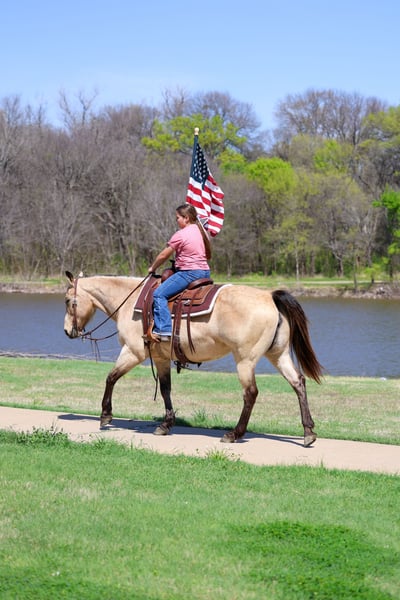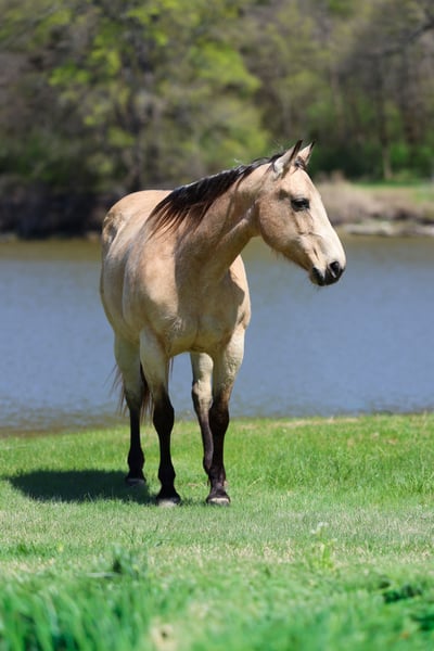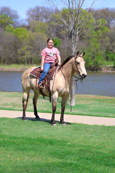 Cookie Dough, 12 lat, klacz quarter horse o wzroście 14,3 hh, koloru buckskin
