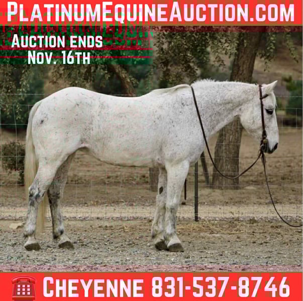 ONLINE AUCTION Place your bids at www.PlatinumEquineAuction.com Starting Bid $3500 Auction ends November 16th, 2025 Need a new saddle? Check out White Rock Saddles on our website or Facebook Breeze is a 12 year old, stout, and stocky mare standing 14.2 hands high. She’s built right, with thick bone and solid feet. This mare has truly been everywhere, from busy city streets to rugged mountain terrain, and she takes every new challenge in stride. Breeze goes anywhere you point her without hesitation and is completely comfortable around cars, pedestrians, bicyclists, and all sorts of wildlife. She’s carried everyone from beginners to advanced riders and even grandma out for a relaxing ride. No matter who’s in the saddle, Breeze takes care of her rider. In the arena, she’s just as enjoyable. Breeze moves in soft, pretty circles, carries her head low and collected, and has a great stop and reverse. She’s respectful of leg and seat cues, turns nicely, and neck reins light enough to steer with a pinky. Her kind, willing attitude makes her an easy horse for just about anyone to get along with. Breeze has also been used out on the ranch and has been roped off of. She loves working cows and shows real potential in team roping. She’s level-headed, all business, and has zero buck. You can carry a flag, drag a tarp, or toss a ball — nothing fazes her. She is not a marish mare and gets a long well with all other horses. She has been in a herd or stalled up alone. If you’re looking for a safe, reliable, and versatile mare, Breeze checks every box. She’d make a wonderful family horse, a steady addition to a lesson program, or a trusted partner for anyone who enjoys time on the trail. Breeze is the kind of horse that’s hard to find broke, honest, and always willing to please. For more info call or text Cheyenne Rey at 831-537-8746. She is located in Bitterwater, CA. ONLINE AUCTION Place your bids at www.PlatinumEquineAuction.com Starting Bid $3500 Auction ends November 16th, 2025 Need a new saddle? Check out White Rock Saddles on our website or Facebook
