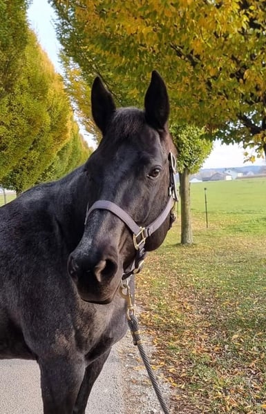 Blue Roan - Amerikaanse Quarter Horse merrie - trouwe partner voor ervaren ruiters zoekt een nieuw thuis In opdracht wordt deze expressieve Blue Roan merrie geplaatst in een passend, nieuw thuis. "Blue" wordt vanwege gezondheids- en privéomstandigheden afgestaan door haar eigenaar en zoekt een empathische, ervaren ruiter die haar verder wil ontwikkelen en haar de nodige aandacht geeft. De afgelopen jaren is ze voornamelijk gereden en af en toe bereden, momenteel wordt ze weer conditie opgebouwd en gymnasticeerd. Ze toont zich werkwillig, met een mooie voorwaartse beweging, blijft echter altijd goed te hanteren in tempo. Geen paard voor beginners – ze heeft iemand nodig met een rustige hand en duidelijke hulpteugels. Ze kent meerdere ruiters en kan daar goed mee overweg, maar is alleen geschikt voor gevorderde ruiters. In omgang is ze makkelijk en braaf. Ze leeft in een open stal, is robuust, hoefvrij en regelmatig ontwormd. Daarnaast is ze buitenrit-proof en gaat ze graag het terrein in. Ze heeft al een hengstveulen gehad, eveneens in Blue Roan-kleur (homozygoot). Dankzij haar goede afstamming en correcte bouw is ze ook uitstekend geschikt voor de fokkerij (4 Panel N/N). We kunnen ons goed voorstellen haar ook als fokmerrie te plaatsen. De merrie beschikt uiteraard over volledige AQHA-papieren. De verkoop is inclusief een Gomeier Superior zadel (tegen meerprijs). Schofthoogte: 153 cm Leeftijd: 13 jaar (geboren op 6 maart 2012) Locatie: Bezirk Braunau am Inn Om de recreatieve men- en ruitersport te stimuleren, wordt een vergoeding van €30 gevraagd voor een proefrit – deze wordt volledig verrekend bij aankoop. Bij serieuze interesse kunnen wij graag actuele video’s sturen. Graag ontvangen wij een duidelijke bericht met informatie over rijervaring en huisvestingsomstandigheden.