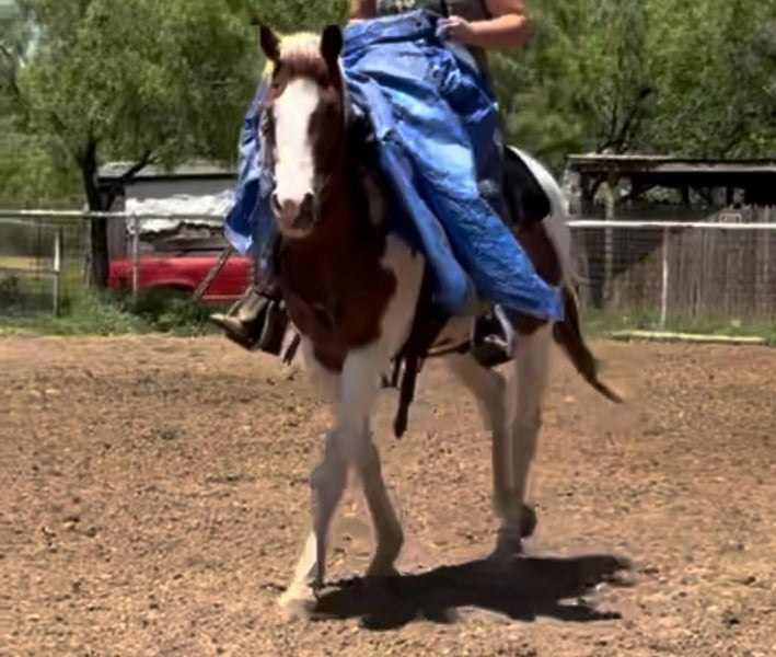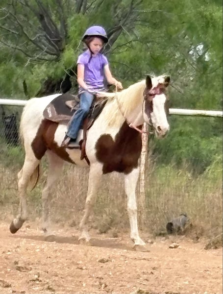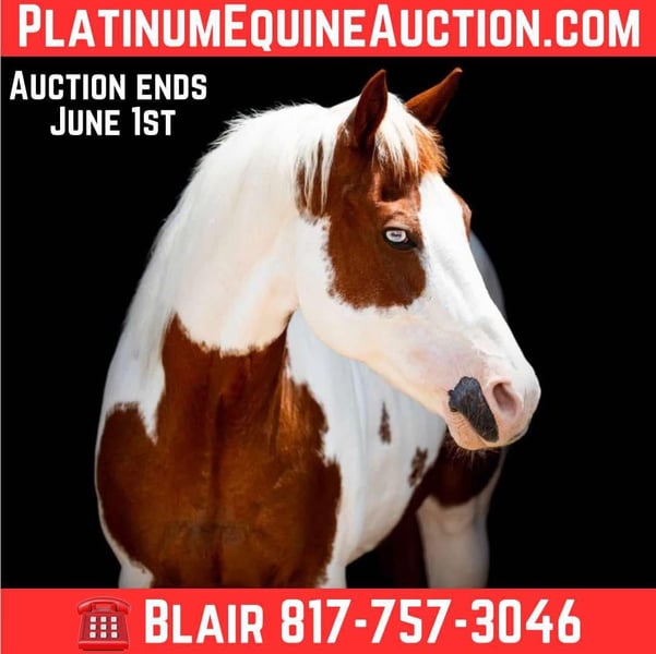 ONLINE AUCTION Place your bids at www.PlatinumEquineAuction.com Starting Bid $3500 Auction ends June 1st, 2025 Need a new saddle? Check out White Rock Saddles on our website or Facebook! Bell is a 12 yr old, 15.2H GORGEOUS sorrel and white paint mare with two icey blue eyes. She has been a lesson horse most recently, but due to the facilities relocation, they had to thin down the herd! Before that, she was a pleasure riding/trail horse for a novice family. Bell is very gentle. She’s the kind the kids love to pamper all day, brushing her hair, bathing her and loving on her. She rides very gentle, goes the speed you ask, when you ask and goes where you point her. As a lesson horse, she was used over obstacles, walking over and dragging tarps, on mini trail courses and did all the fun riding games kids can do! Bell is naturally laid back and aims to please! She’s had everyone from young first time kids on her to adult newbies too! She would be a great trail horse, lesson horse, therapy horse or perfect horse for the whole family to enjoy! She loads, leads, bathes, ties great and takes on new things with ease! Don’t miss this eye catching, gentle and safe mare! Go to her website page northtexashorsecompany.com/bell for more pictures and footage! Please call Blair with North Texas Horse Company for more info at 817-757-3046. We are located in Weatherford, TX and can help arrange affordable shipping to anyone!! ONLINE AUCTION Place your bids at www.PlatinumEquineAuction.com Starting Bid $3500 Auction ends June 1st, 2025 Need a new saddle? Check out White Rock Saddles on our website or Facebook!