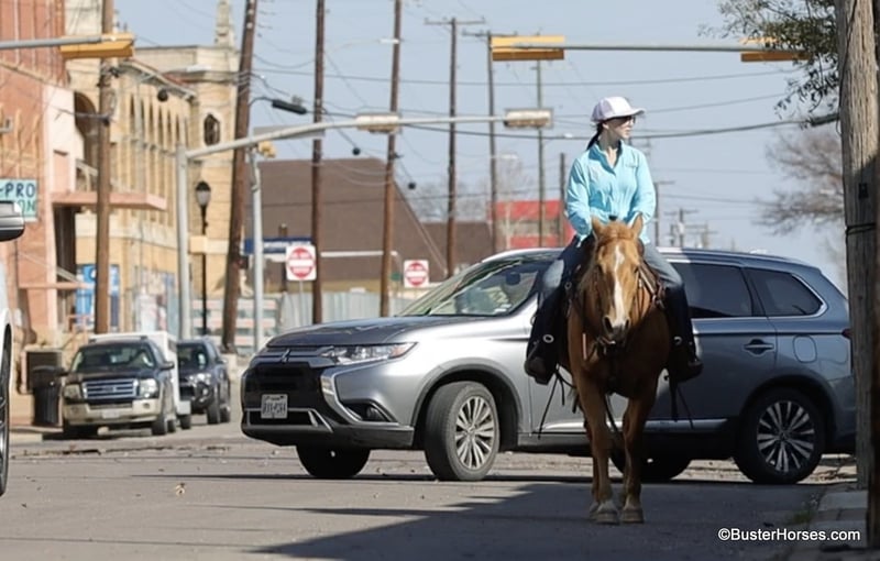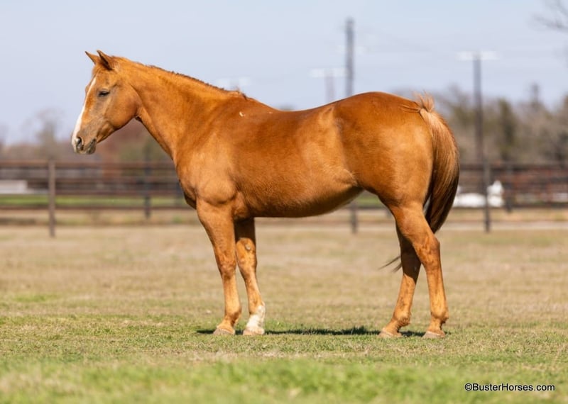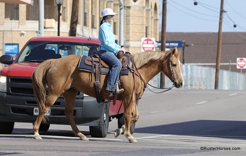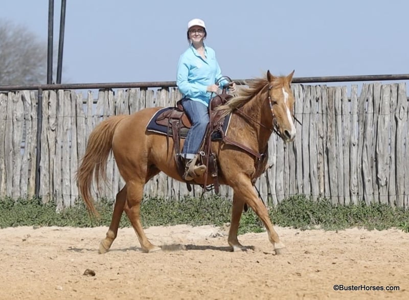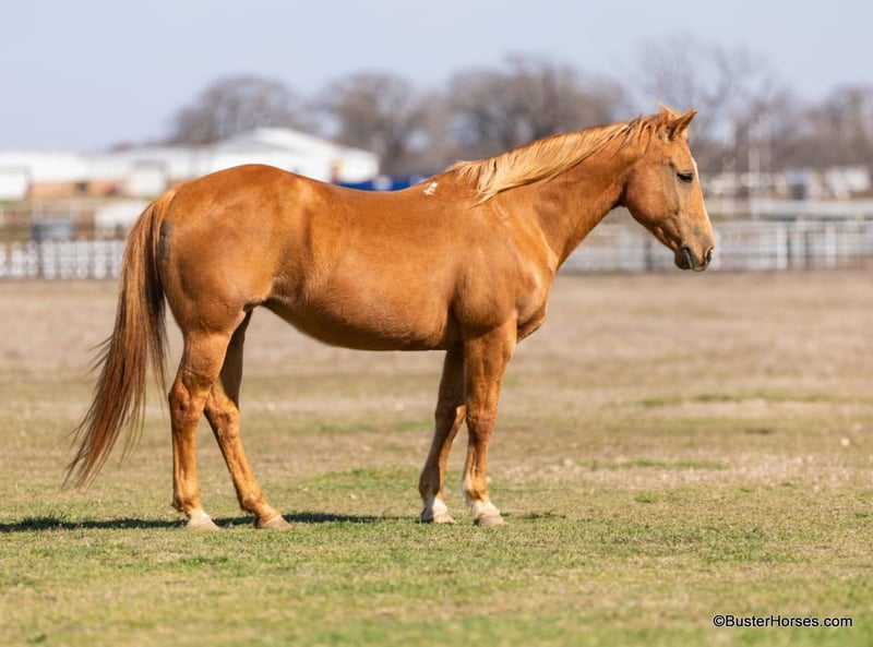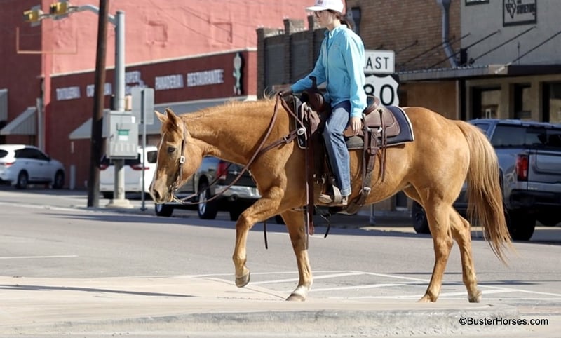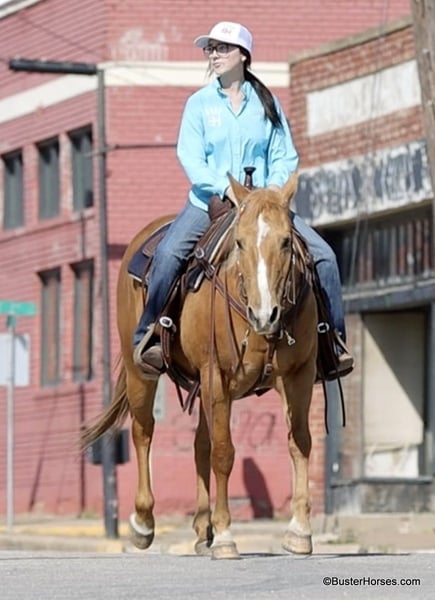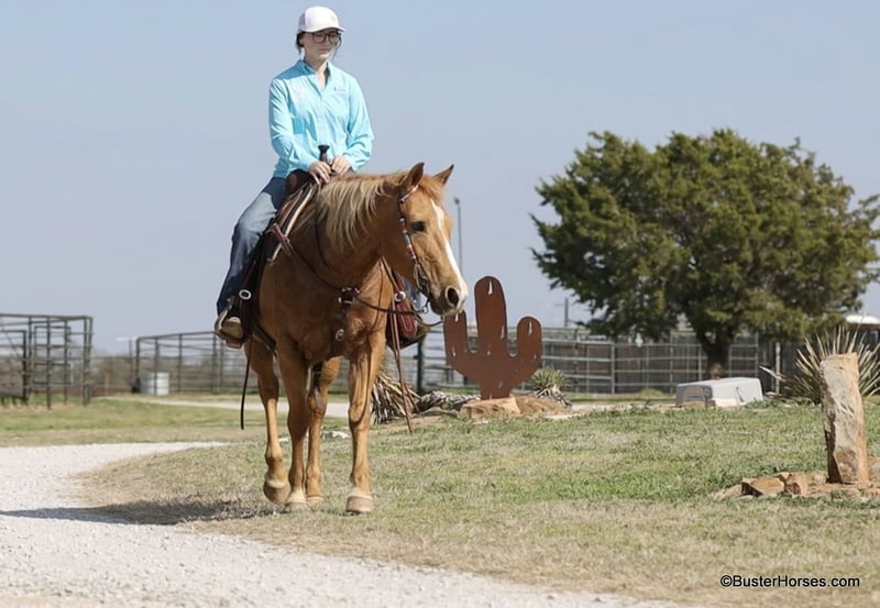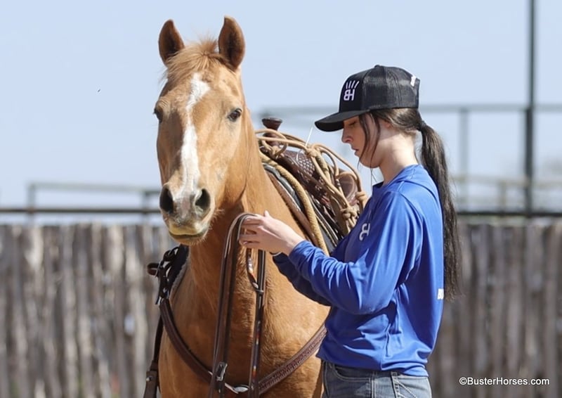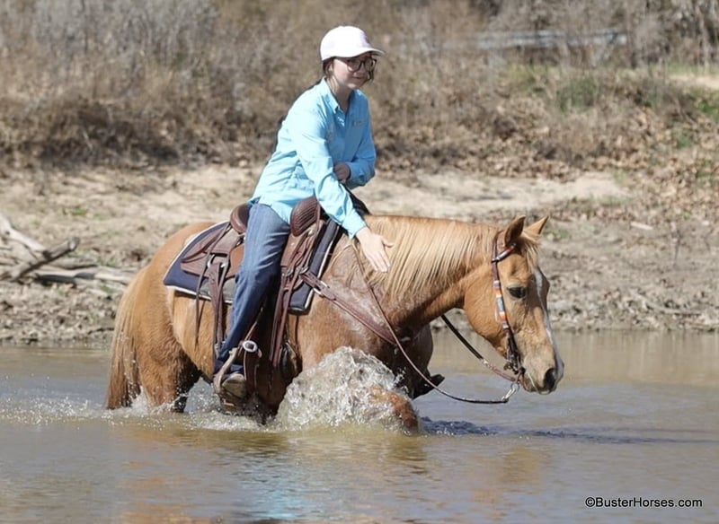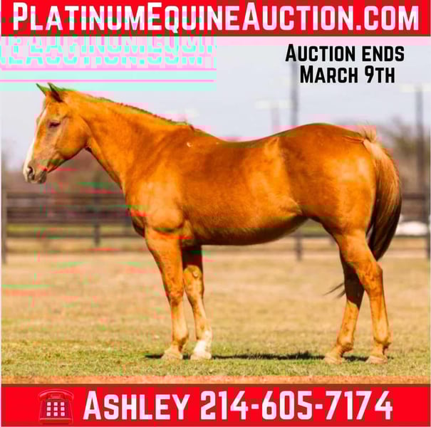 ONLINE AUCTION Place your bids at www.PlatinumEquineAuction.com Starting Bid $3500 Auction ends March 9th, 2025 Need a new saddle? Check out White Rock Saddles on our website or Facebook! Cookie is the sweetest little all around starter horse! She’s just the right age and just the right size to suit just about anybody! She has done lots of trail riding, tons of little entry level 4-H shows, and has also competed at play days. She is very uncomplicated to ride – a simple straight-line, old-school, just point and shoot, ranch horse/rope horse style of ride. Simple and easy! She has absolutely exceptionally smooth gaits, an absolutely incredibly smooth little hobby horse lope, that would make just about any level of rider feel comfy cozy and right at home! She is about as tolerant and forgiving of a horse as you can find! Cookie has been primarily used for trail riding the last 2 years. She is an easy keeper and lives outside and looks great pasture kept, she’s naturally full-bodied and a pretty cute little mare. She has an alert expression and is already ready for the next adventure. She’s exceptionally good in town – absolutely loves it! She did tons of trail riding in urban areas and it takes a whole lot going on for her to be concerned about anything, she’s seen it all!!! Don’t miss out on this fun mare and please call anytime with any questions about Cookie contact Buster Horses Ashley 214-605-7174 Cookie is located in Weatherford, TX – one hour from Dallas / Fort Worth International Airport. She is an easy day trip or fun overnight trip to come try out, from anywhere! We are experienced knowledgeable sellers and we can help with quickly arranging affordable shipping to any buyer’s location – we have experience shipping horses worldwide – including regularly to Hawaii, Canada, Mexico, Europe, and South Africa. Go to our Facebook page Buster Ranch and check our website for buyer reviews, for more videos, additional info, etc: https://busterhorses.com/Palomino-Cookie ONLINE AUCTION Place your bids at www.PlatinumEquineAuction.com Starting Bid $3500 Auction ends March 9th, 2025 Need a new saddle? Check out White Rock Saddles on our website or Facebook!