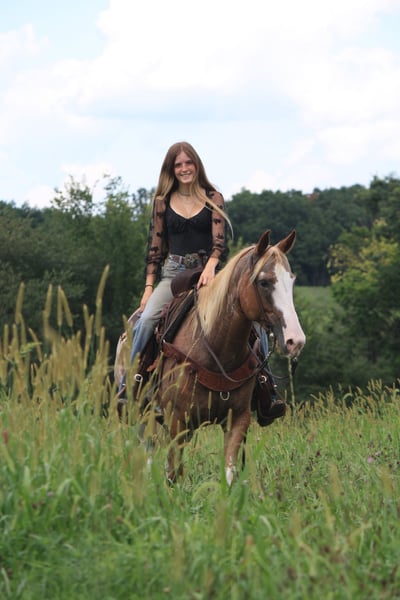 Classy and Safe All Around 12 Yr Old Red Roan Sabino QH Cross!