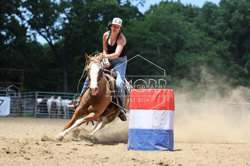 "AVAILABLE ON ONLINE HORSE AUCTION AT www DOT MagicHorseAuction DOT com BIDDING OPEN NOW thru TUESDAY | October 28TH! - BUY IT NOW AVAILABLE! *Final price will be determined on auction site* CONSIGNOR CONTACT INFO: Bar B Equine LLC 573-416-6558 LOCATION: Owensville, MO "Introducing Cedar, the horse one could only dream of having for themselves! This stunning red roan sabino 12-year-old mare stands at 15 hands tall and is a finished 3D barrel horse, ready to take you to the winner's circle at local shows. Cedar's the perfect choice for beginners and youth riders—easy going with impeccable ground and saddle manners. She self-loads, backs off the trailer effortlessly, and hauls like a dream, whether it's solo or in a group. Fun to ride and equipped with a handy neck rein and leg pressure, Cedar excels on trails, confidently crossing obstacles and embracing the great outdoors. There has never been a time I’ve dreaded being around or on this mare, everything is always such a breeze and completely hassle free. With her sweet personality and desire for attention, catching her is never a chore! Cedar is sound, requires no maintenance (even barefoot), and thrives on a simple forage diet. Plus, she stands up beautifully in any arena no matter how dry or sloppy and has no known health issues, aside from a minor scar that doesn’t bother her a lick. No need for spurs here—she's all about cooperation! Cedar rides in all sorts of variety, being a halter, bridal, war bridal or just a neck rope- this gal will do it all bareback or saddled! Cedar has been lightly jumped over small fences and fallen trees on the trails, and she has also done some ranch/trail classes through our local saddle club! Cedar is classy, safe, and honest- and has limitless opportunities. With her eye catching color and charming chrome, you’re BOUND to turn heads everywhere! This is a mare I seriously trust to carry me through war- she is determined, and full of try yet never overdoes herself. This gal would never set you in a predicament that would make you afraid or uncomfortable, and always takes things slow until you ask for more. She is an absolute dream that I am so grateful I’ve been able to enjoy! Cedar is not barn, trailer, buddy, gate, anything sour- she will walk right in and out of that arena like she’s carrying a baby. She is extremely user friendly and will work off of neck rein, leg pressure, or a light plow rein- making her incredibly enjoyable for all level riders! Whether you’re looking for a partner to enjoy the trails with, a horse the whole family can enjoy, something to show you the ropes of the show world, or a step up barrel horse for you or your kiddos- Cedar has you covered in more than just one aspect! I really can’t say enough good things about this mare, and could ramble on and on about her for days on end- but I’ll just end by saying that this mare has done us wonders, she makes every horse task less chore-like, less stressful- she gives the joy in the simple things. She really makes you grateful for good horses, and we’ve been incredibly over the moon grateful for her!