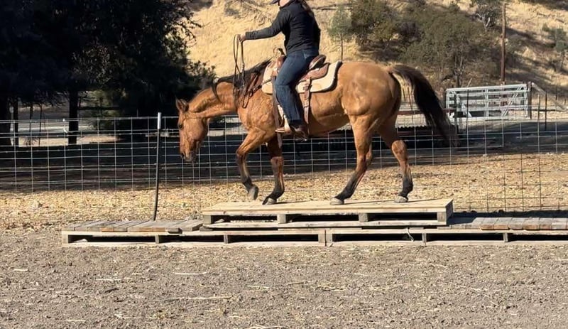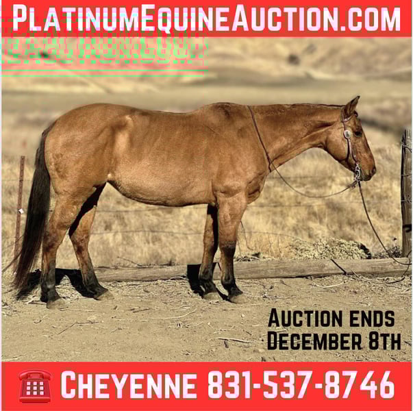 ONLINE AUCTION Place your bids at www.PlatinumEquineAuction.com Starting Bid $3500 Auction ends December 8th, 2024 Need a new saddle? Check out White Rock Saddles on our website or Facebook! Opal is the epitome of good old fashioned quarter horse. Strong build, sane mind and unconditionally SAFE. Stand a wide 14.3HH and the prime age of 12, they truly don’t come any better. Opal has carried young riders through tricky trails, taking care of them every step of the way. She travels through thin mountain trails easily, walks calmly in chaotic crowded streets, and stays quiet in every situation. Opal is as close to bombproof as I like to call one. Dogs, cows, deer, and other animals don’t phase her none. She has zero spook, zero buck, and is comfortable with any time off. She has done it all, carried flags, been used as a lesson horse, been in downtown parades, and attended trail competitions. Opal is the type of horse you can put anyone on and have all the confidence she will babysit her rider. She has a good handle on her and a huge stop, with the lightest cue. She lopes both ways effortlessly, soft neck rein and will collect at the poll. Opal doesn’t require shoes and has good solid feet, she will always stand for the farrier for a quick trim and is always kind and patient. She is the easiest horse to clip, tack up, or bathe because she always stands like a statue for you. Opal never gets in a hurry and will stand tied long hours, haul like a champ in any trailer, and can be stalled or pastured with other horses. Nothing bothers her and she is a saint of a horse. If you’re looking for calm, safe, and fun. Here she is!! Come see her in Bitterwater, CA or call Cheyenne Rey 831-537-8746 for more info. ONLINE AUCTION Place your bids at www.PlatinumEquineAuction.com Starting Bid $3500 Auction ends December 8th, 2024 Need a new saddle? Check out White Rock Saddles on our website or Facebook!