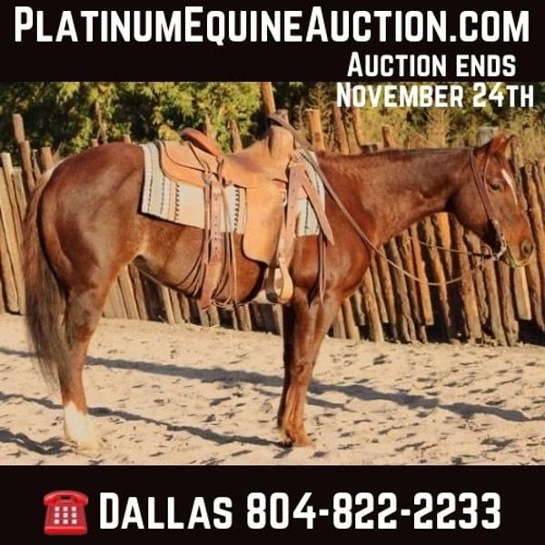 ONLINE AUCTION Place your bids at www.PlatinumEquineAuction.com Starting Bid $3500 Auction ends November 24th, 2024 Need a new saddle? Check out White Rock Saddles on our website or Facebook! “Lena Lil Leo” aka Beth is an AQHA registered 2011 model mare standing 14.2hh, and a great granddaughter of “Smart Little Lena”!! Not only is Beth an absolute joy to have around, she’s also a blast to ride! Whether you’re looking to hit the trails or the arena, Beth is your gal! This mare is absolutely surefooted, safe, and fun to ride down the trail! Rough rocky terrain, flowing rivers, fallen trees, waist high grass, you name it and Beth will go through it! Beth will mosey on through the brush with ease! If hitting the trails isn’t quite your style, Beth will take just as good care of you in the arena! This well versed mare will walk, trot, and lope both directions on a loose rein, has a great neck rein and a huge stop. We have taken Beth to tons of team pennings, ranch-versatility shows, and gymkhanas, and she never ceases to amaze us. No matter what job you throw at this gorgeous little mare, she will take care of you and try her heart out. Good to groom, saddle, bathe, clip, and shoe! Freshly shod and has been recently floated! Comes with an UTD coggins and health. Transport can easily be arranged anywhere in the US! Located in Camp Verde, AZ. Contact D/C Equine Dallas 804-822-2233. ONLINE AUCTION Place your bids at www.PlatinumEquineAuction.com Starting Bid $3500 Auction ends November 24th, 2024 Need a new saddle? Check out White Rock Saddles on our website or Facebook!