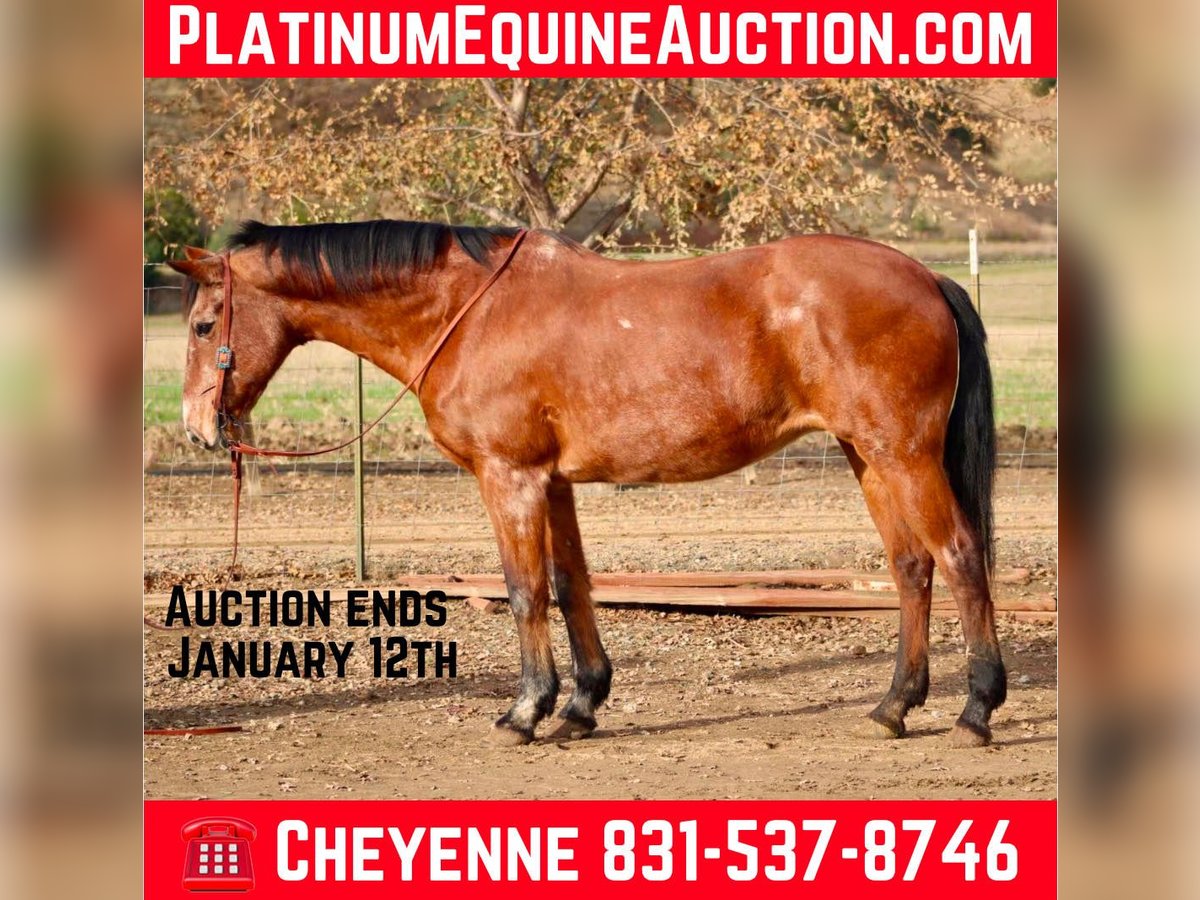 ONLINE AUCTION Place your bids at www.PlatinumEquineAuction.com Starting Bid $3500 Auction ends January 12th, 2024 Need a new saddle? Check out White Rock Saddles on our website or Facebook! Minnie is a 13 year old, 14.3HH grade roan Appaloosa mare. This little lady is the epitome of a true beginner horse! Laid back, patient, kind and most of all safe for toddlers to your great grandmother! No horse experience is needed to get along with her! Minnie has more whoa than go, but will travel out anywhere you go with a laid back stride. She has the sweetest little pony lope that is slow, steady and the easiest to sit. You can steer her with your pinky finger on the rein, she’s that light and broke. WTL with no bridle, stop at the word “whoa” and reverse with the slightest pressure. She will walk for miles with her head low and on a loose rein. She never gets startled, and is never in a hurry. Minnie is as experienced as a trail horse as you’ll ever find and is adaptable to every situation. Crosses water, bridges and anything else of the sort without hesitation. Never gets buddy or barn sour, and you can trust she will take care of beginner riders. We have done trail competition course like a pro, carried flags, rode in town, and out in the forests, still no one is better behaved than Minnie. Yes, I know you’ve probably convinced yourself you don’t want a mare, but Minnie isn’t not a normal mare and you will change your perspective on mares, she has zero attitude, no mood swings and gets along with every horse she has ever been with. If you didn’t know she was a mare, you would have thought she’s a gelding! Minnie is an excellent choice for first time horse owners, to teach them the ropes, or a confidence builder for anyone wanting to just get back to the love of riding again! Minnie has zero problems, and is ready to take on a forever home with a new family! She is located in Bitterwater, CA. for more information please contact Cheyenne Rey 831-537-8746. ONLINE AUCTION Place your bids at www.PlatinumEquineAuction.com Starting Bid $3500 Auction ends January 12th, 2024 Need a new saddle? Check out White Rock Saddles on our website or Facebook!