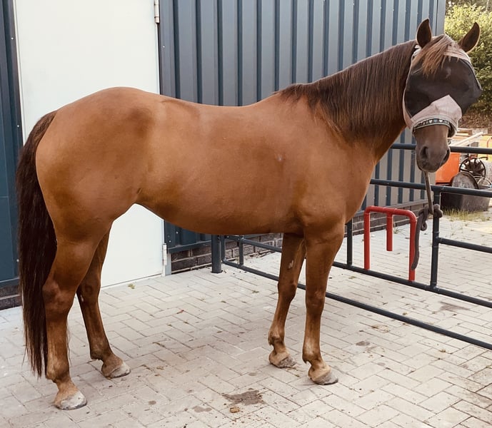 I have made the difficult decision to sell my beloved 16-year-old Quarter-Haflinger mix mare Talina Tiny Toon (height approximately 143 cm). Talina is absolutely sweet to handle, is great to ride, but has a bit of a stubborn streak ;-) She is ridden Western and loves trail rides, whether alone or in a group. She also has competition experience and has participated in speed rodeos. Talina is a laminitis pony (the last episode was several years ago) and is fed exclusively haylage with us, as she suffers from a mild hay dust allergy. She lives in an open stable and integrates well into a herd. A high-quality Western saddle, bridle, and other equipment are available. She will only be sold to the very best hands! For more information, feel free to message me.