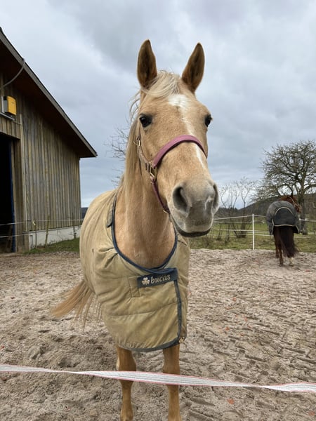 Our wonderful Nelly is looking for a loving forever home. She is a 15-year-old Quarter Horse mare with solid, refined training. Nelly is sensitive to ride, reliable in the field, and absolutely friendly in her manner. She has experience working with children and as a therapy horse – my 5-year-old daughter has regularly ridden her. In early 2025, she sustained a tendon injury and is currently in the rest and healing phase, with box rest. Walks are already permitted, during which she is led or ridden by my daughter. Once fully recovered, she can easily be used as a leisure horse – however, the weight limit is 70 kilograms. A gentle muscle-building phase is naturally necessary. In September 2025, Nelly also underwent successful surgery on her paranasal sinuses due to mucus buildup. The operation was complication-free, and she is now fully healthy again. Only the stitches from the nasal incision are still present, but these are healing without issues. Important: Nelly is only available for pasture turnout with plenty of movement space. In the herd, she appears social and tends to be lower-ranking. She avoids conflicts and only sometimes emits a soft squeal when challenged, but she is never unfriendly or aggressive. Since she is still in recovery and requires some care and time, we are offering her at a significantly reduced price. A wonderful opportunity to acquire an exceptionally well-behaved and family-friendly horse at a fair price.