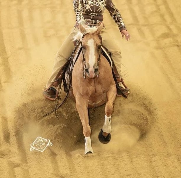Bingo è una fattrice molto affettuosa e robusta. È assolutamente tranquilla nel maneggio e nella gestione. È ancora parzialmente montabile da bambini, poiché ha una leggera difficoltà dietro, ma non ha problemi e non lo trasmette. Attualmente ha ancora un puledro al seguito, che può essere acquistato insieme a lei. In allegato c'è una foto della puledra. Il padre del puledro è Roosters Topgun, da Ricochet Rooster, fratello pieno di Mr. Ricochet.
