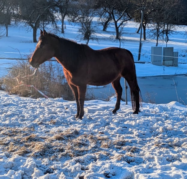 Due to a personal emergency, we are seeking a quick sale for this older Quarter mare with some health issues. She is conditionally rideable and suitable as a companion horse or to breed another foal. The foal is completely healthy and will receive full registration papers, which are already in process. The price is a reduced foal price, so essentially, the mare is included for free.