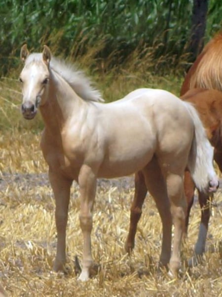 Shesa Golden Captain aka Stella ist ein wunderschönes Palomino Stutfohlen vom erfolgreichen Reininghengst Arc Captain,der in der Nonpro Reining mit seiner Besitzerin zahlreiche Erfolge erzielt hat. Stella ist sehr korrekt gebaut mit kräftigem Fundament und zeigt athletische Bewegungenmit vielTalent für Stopps, Turns und Galloppwechsel. Sire: Arc Captain by Master Snapper Dam: AJ Freckles Sugar T by Freckles Sugar Willi Unsere Fohlen wachsen im Herdenverbund mit Fohlengesellschaft auf und sind regelmäßig entwurmt und dem Hufschmied vorgestellt. Mehr Info unter www.brallentin-quarterhorse.de
