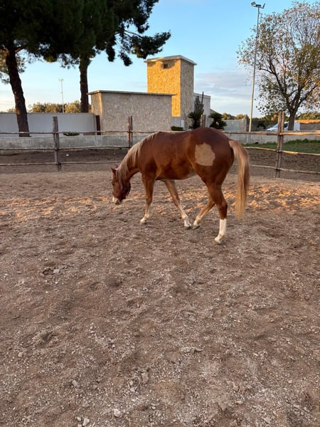 20-month-old filly. Her sire is Spat Olena, and her dam is Gunns N Rozes. When free, she shows great aptitude for stopping and rolling. She is very docile and affectionate. Her mane and tail are platinum blonde. Futurity prospect 2027. Very reasonable price.