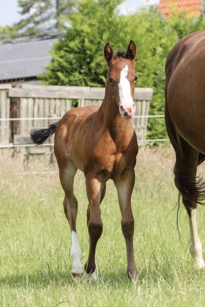 God Loves Chocolate - diese elegante Quarter Horse Stute, 6.2025 geboren mit einem geschätzten Endmaß von 150 cm, ist ein wahrer Hingucker mit viel Ausdruck und Präsenz. Sie besitzt ein korrektes, gutes Gebäude, ist gut bemuskelt und äußerst athletisch. Gesund und vital ist sie bei Abgabe altersgemäß geimpft und entwurmt. Schoki wächst in einer kleinen Stuten- und Fohlengruppe auf, wird in Offenstall- und Wiesenhaltung gehalten und ist gut sozialisiert. Sie ist sehr menschenbezogen, neugierig, verschmust, freundlich, offen und interessiert. Leicht im Handling, gelassen, lernwillig und bewegt sich geschmeidig. Besonders beeindruckend ist ihr schöner Raumgriff und ihr toller Untertritt. Damit kann sie auch gut eine Pleasure mit gehen. Schocki wird ein echter EWU Allrounder. Hancock meets Cowhorse - ein gelungener Outcross, der wirklich überzeugt. Wird mit AQHA-Papieren abgegeben, und eine klinische AKU wird im Rahmen des Verkaufs von der Züchterin in Auftrag gegeben. Ob für Sport, Turnier oder Freizeit - dieses Fohlen ist vielseitig einsetzbar und wird auch den Freizeitreiter mit gehobenen Ansprüchen glücklich machen.
