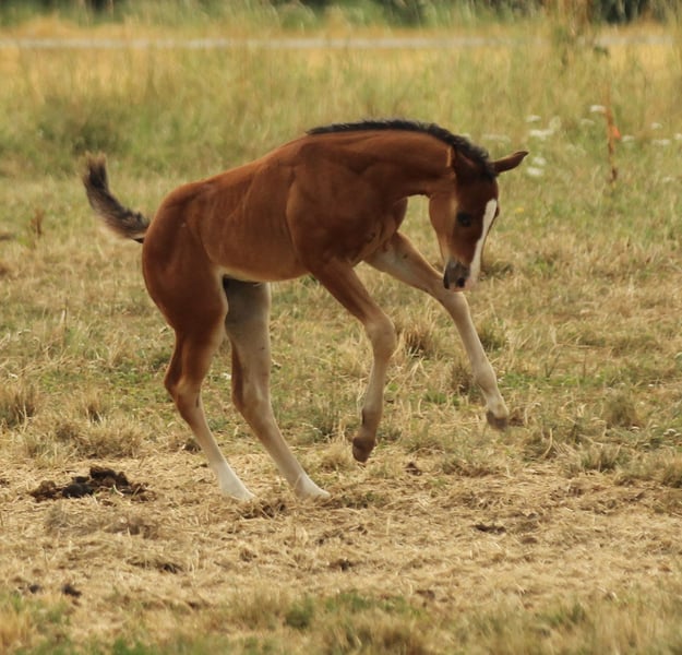 Die süße Paula ist ein liebenswertes sehr ruhiges Quarter Horse Stutfohlen aus bester Abstammung. Unkompliziert und entspannt ist sie auch kurzerhand Siegerstutfohlen an der diesjährigen DQHA Fohlenschau geworden. Mit 82,14% wurden sie zu einem 1A Prämienfohlen gekürt und für ihr tolles Fundament gelobt! Cashlight Gun SR, wie Paula auf dem AQHA Papier heißt, ist ab November umzugsbereit und bei Abgabe halfterführig, kennt das Fohlen ABC, Hufbearbeitung und ist gechippt mit DQHA Zuchtequidenpass und AQHA Certificate of Registration ausgestattet.