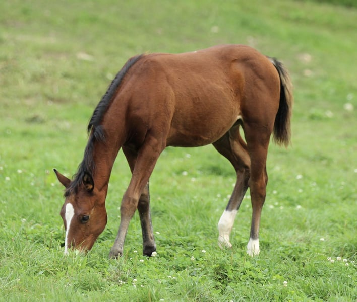 The sweet Paula is a lovable, very calm Quarter Horse filly from the best lineage. Uncomplicated and relaxed, she quickly became the champion filly at this year's DQHA foal show. With a score of 82.14%, she was awarded the 1A premium foal title and praised for her excellent conformation! Cashlight Gun SR, as Paula is named on the AQHA papers, will be ready for relocation in November and will be halter-trained upon transfer. She knows the basics of foal training, hoof care, and is microchipped, equipped with a DQHA breeding passport and AQHA Certificate of Registration.