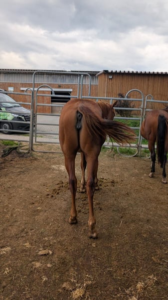 Kitty Metallic Cat - eine äußerst vielversprechende Quarter Horse Jährlingsstute, 4.2024 geboren, mit einem geschätzten Endmaß von 150 cm, mit erstklassiger Abstammung - ein echtes Juwel für Show, Freizeit und Zucht! Dieser Youngster überzeugt mit einem korrekten Gebäude, viel Fundament und guter Bemuskelung. Sie wächst artgerecht im Herdenverband auf und kennt sowohl Offenstallhaltung als auch Weidegang. Charakterlich lässt Kitty keine Wünsche offen: Menschenbezogen, freundlich, aufgeweckt, neugierig und verschmust. Es wird regelmäßig gehandelt, kennt das Fohlen-1×1, lässt sich ruhig anbinden und zeigt sich stets kooperativ im täglichen Umgang. Ein echter Hingucker mit tollem Bewegungsablauf - ein Top-Prospect für den Cutting Sport! Kitty bringt alle Voraussetzungen mit, um sich voraussichtlich zu einem erfolgreichen Showpferd oder zuverlässigen Freizeitpartner zu entwickeln - auch als Zuchtpferd sehr interessant. Sie ist eine Enkelin von Metallic Cat und Smooth As A Cat. Ihr Vater ist der erfolgreich geshowte Titanium Toy. Aufgrund einer Bestandsreduzierung wird dieser Schatz schweren Herzens abgegeben.